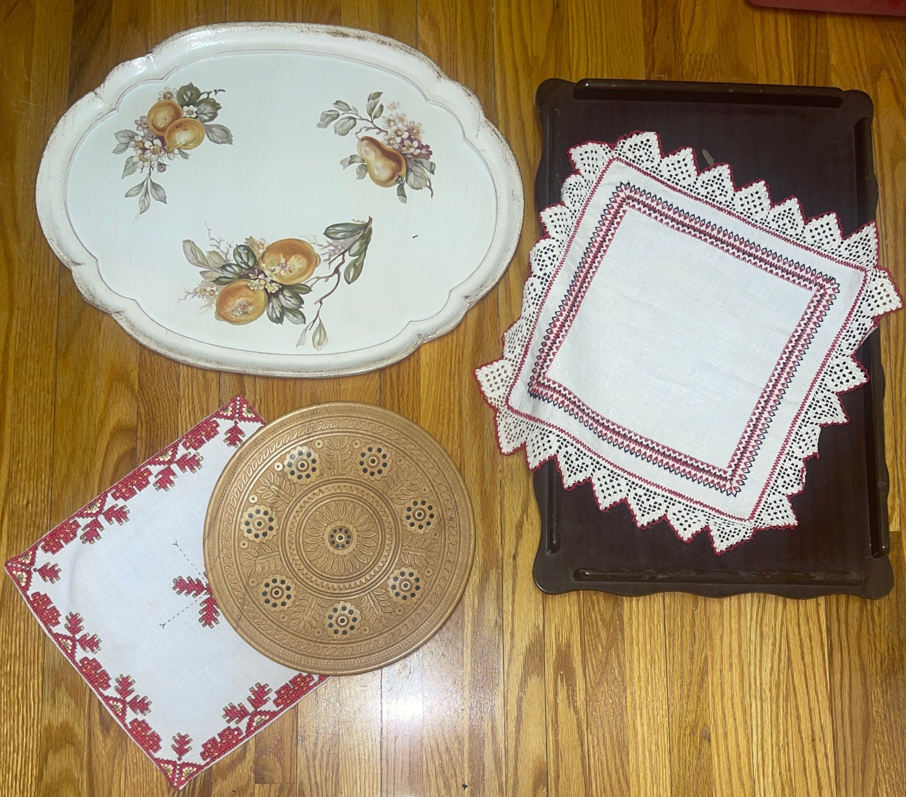 Serving Tray And Glass Dish W/ Traditional Table Runner