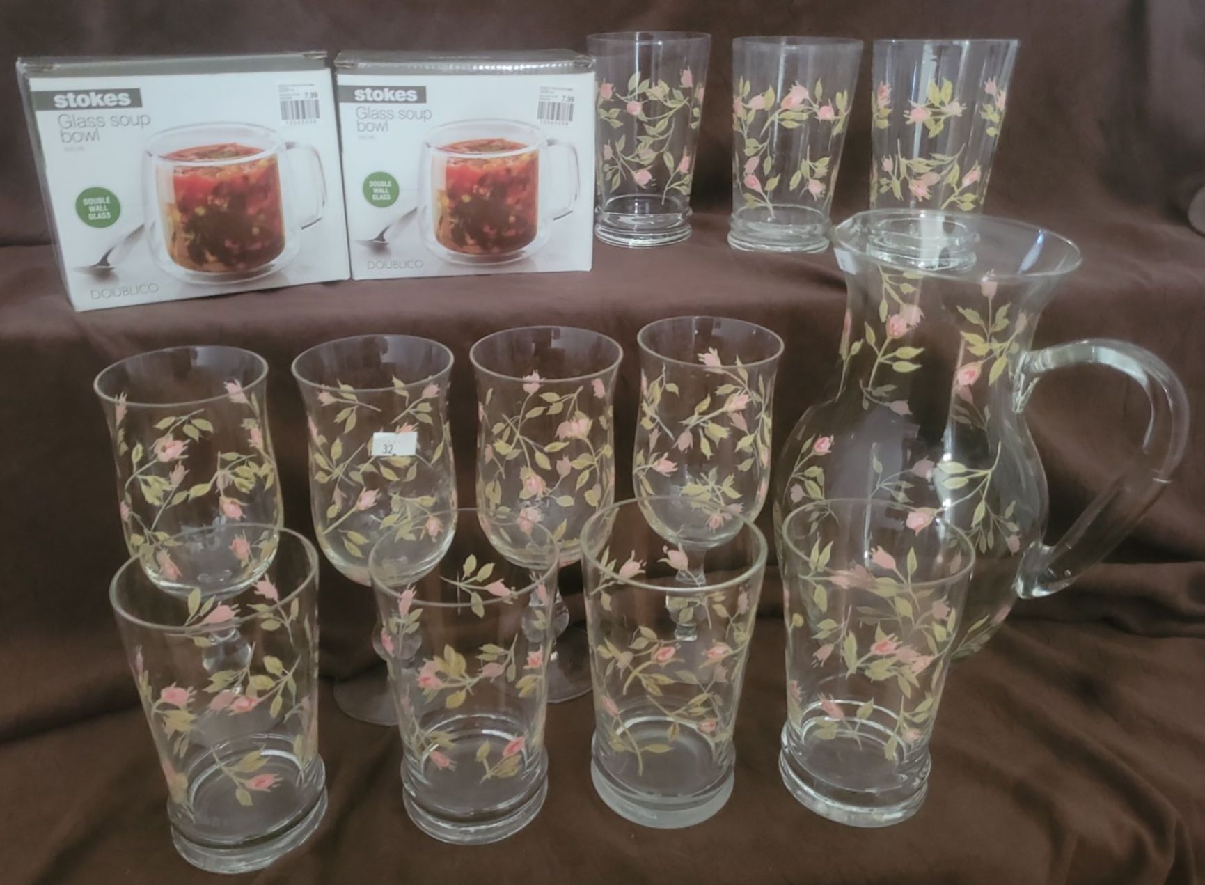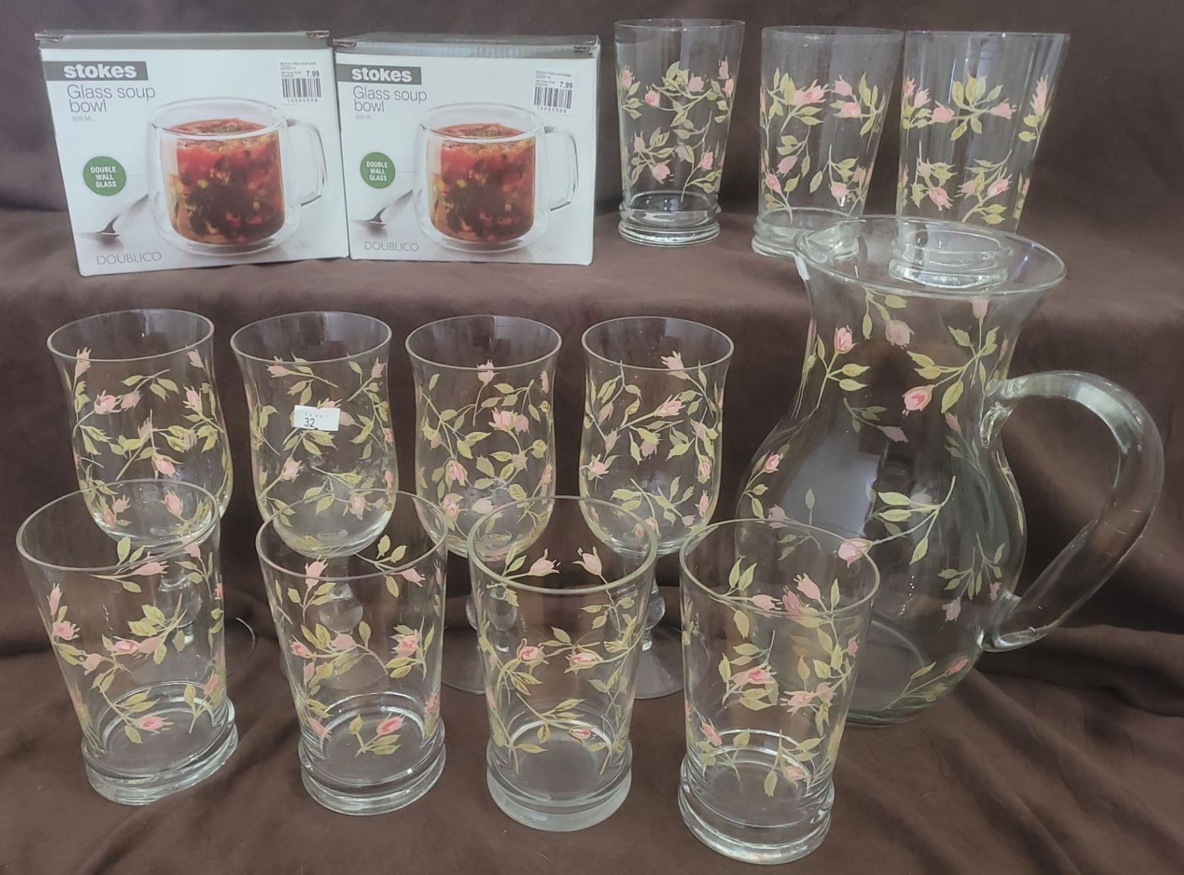 Set Of Pretty Floral Water Glasses w/ Matchin Floral Jug