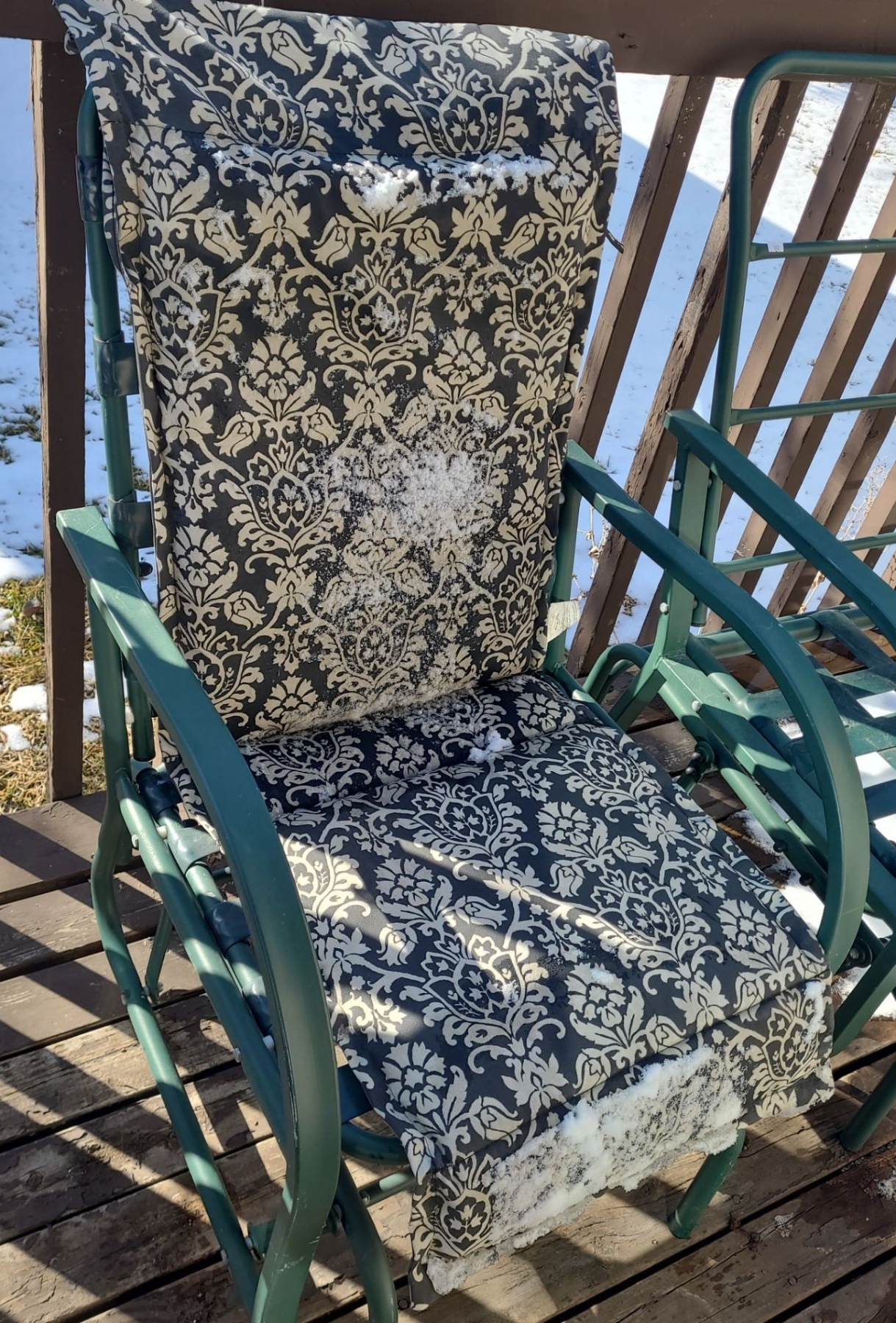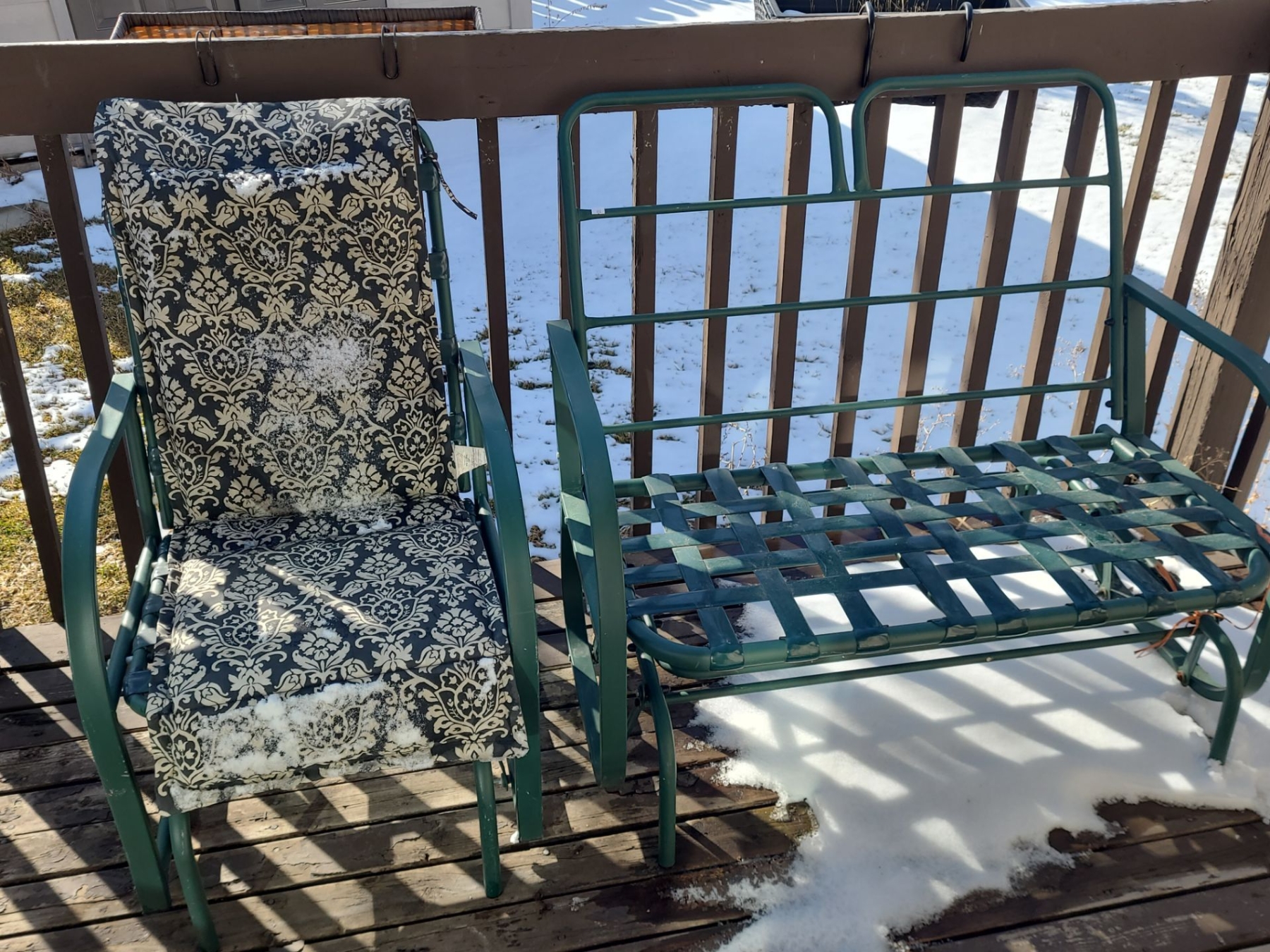 Set of 2 Patio Glider Chairs- Single w/ Cushion 23 W, 26 D, 29 T - Double 44 W, 26 D, 29 T