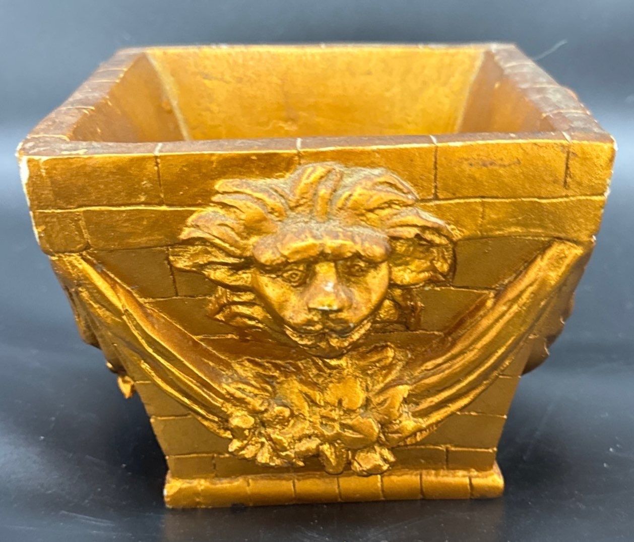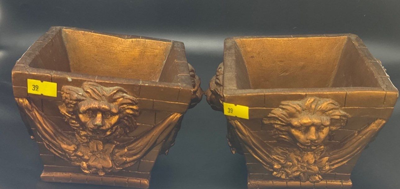Set of 3 Brushed Bronze Small Pots with Lion Design