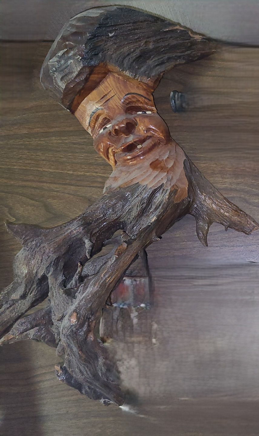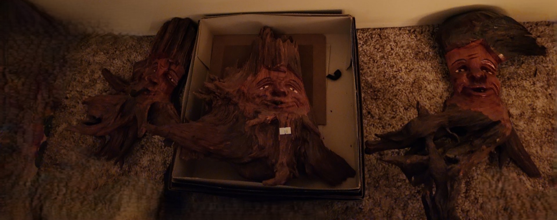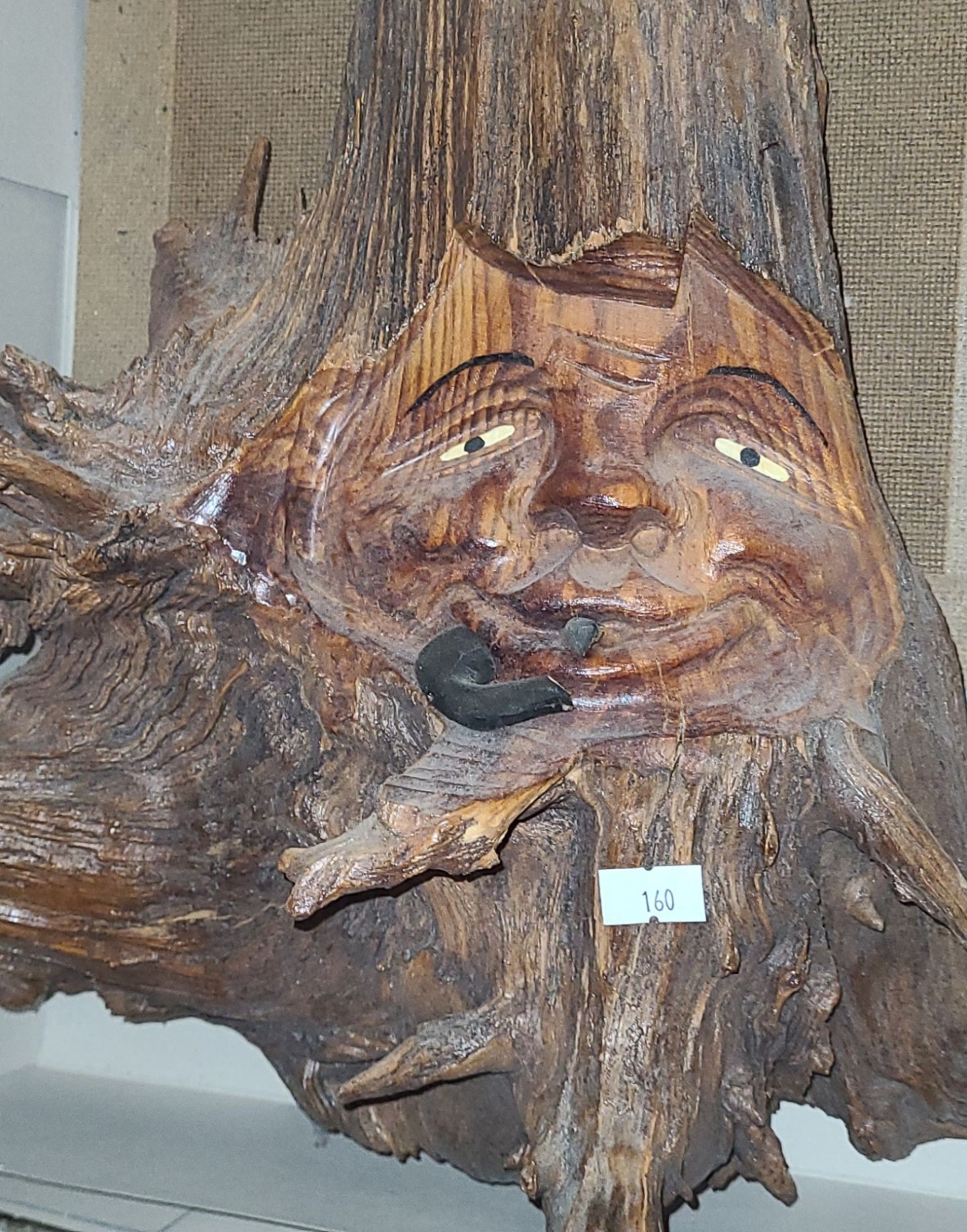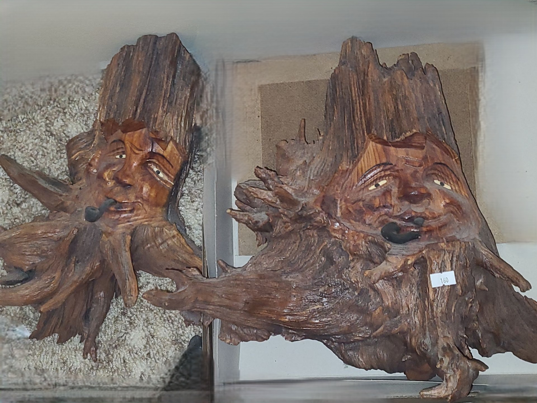 Set of 3 Wooden Carved Faces, 2 Have Broken Pipes as Shown- Largest 12 X 18