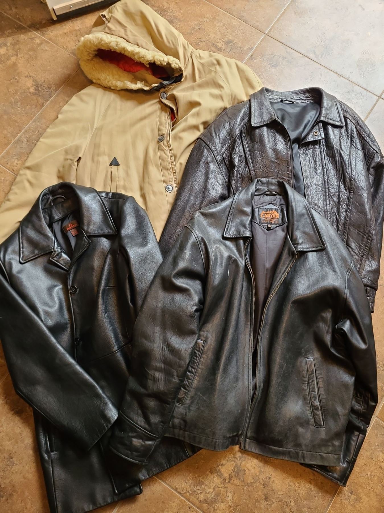 Set of 4 Men's Coats (3 Leather and 1 Parka) Size Large