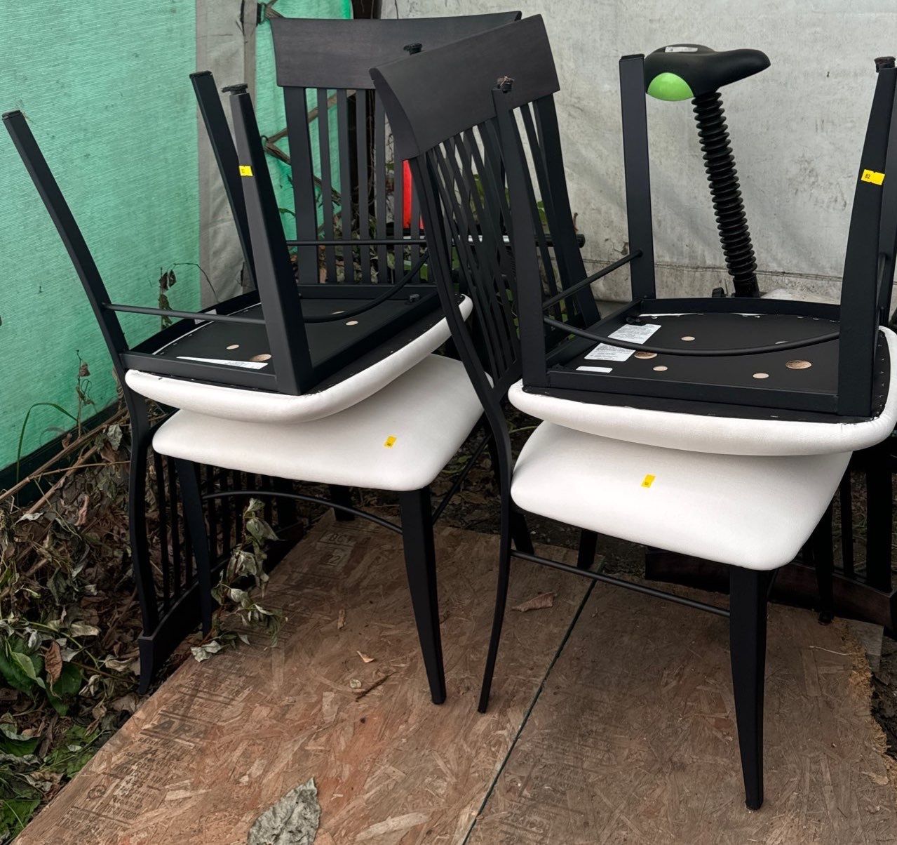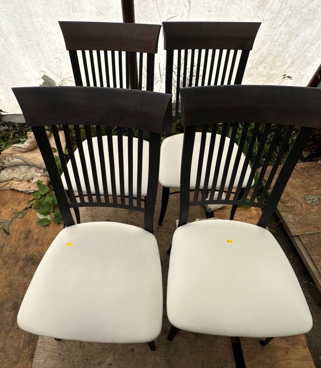 Set of 8 Metal and White Fabric Chairs - 19W, 19D, 39T