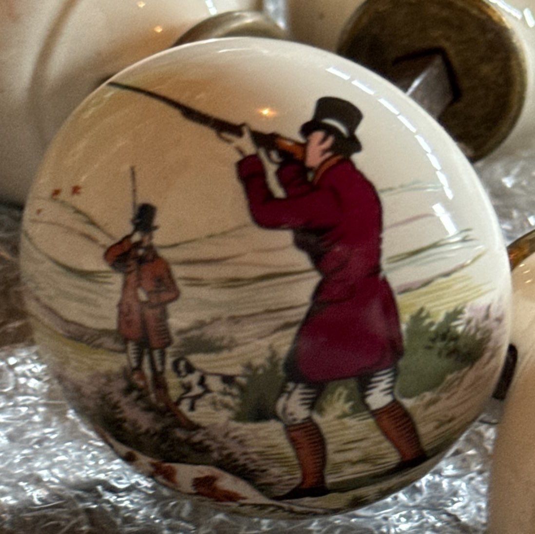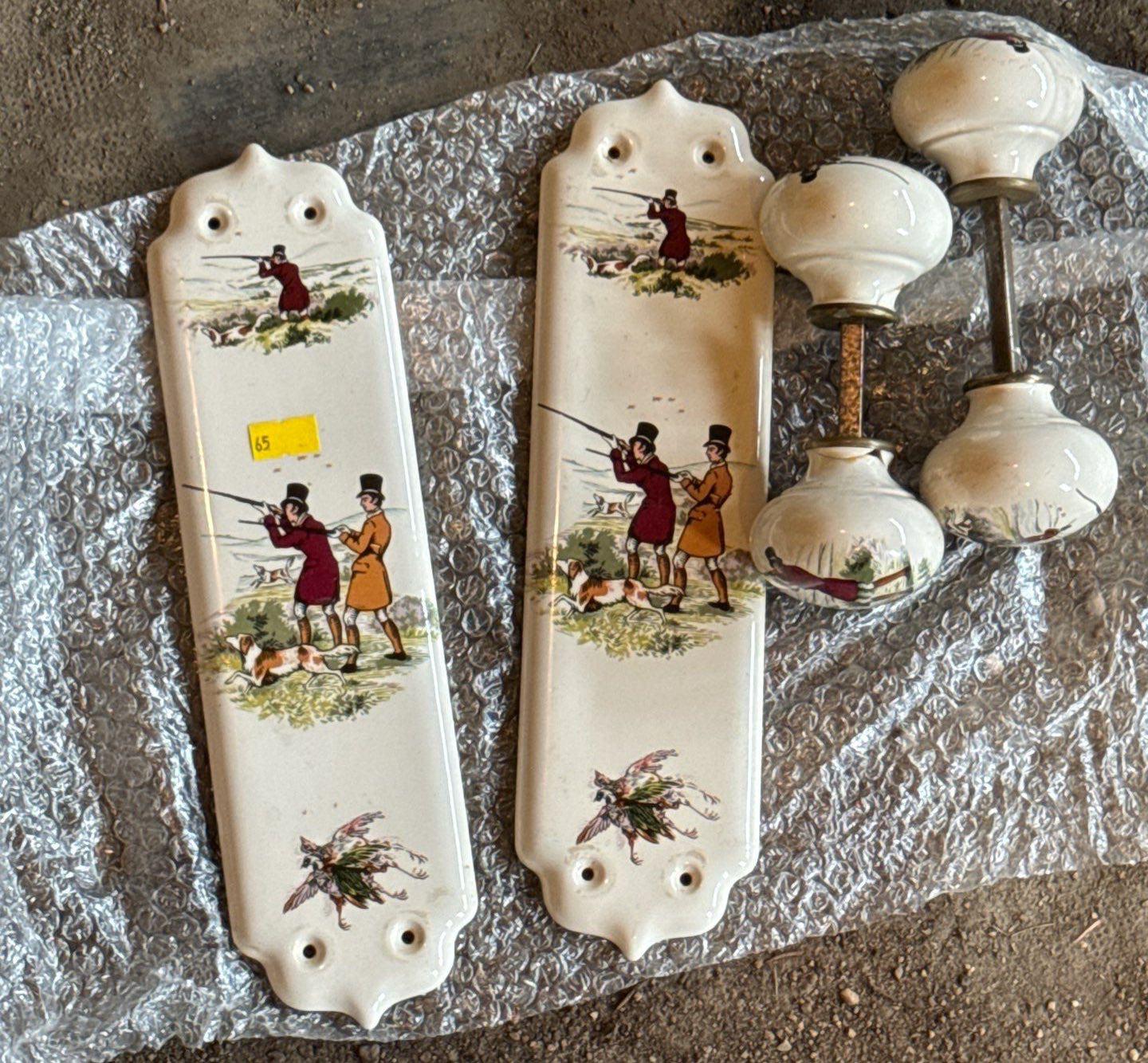Set of Lovely Finger Plates with Lovely Hunting Design and Matching Knobs