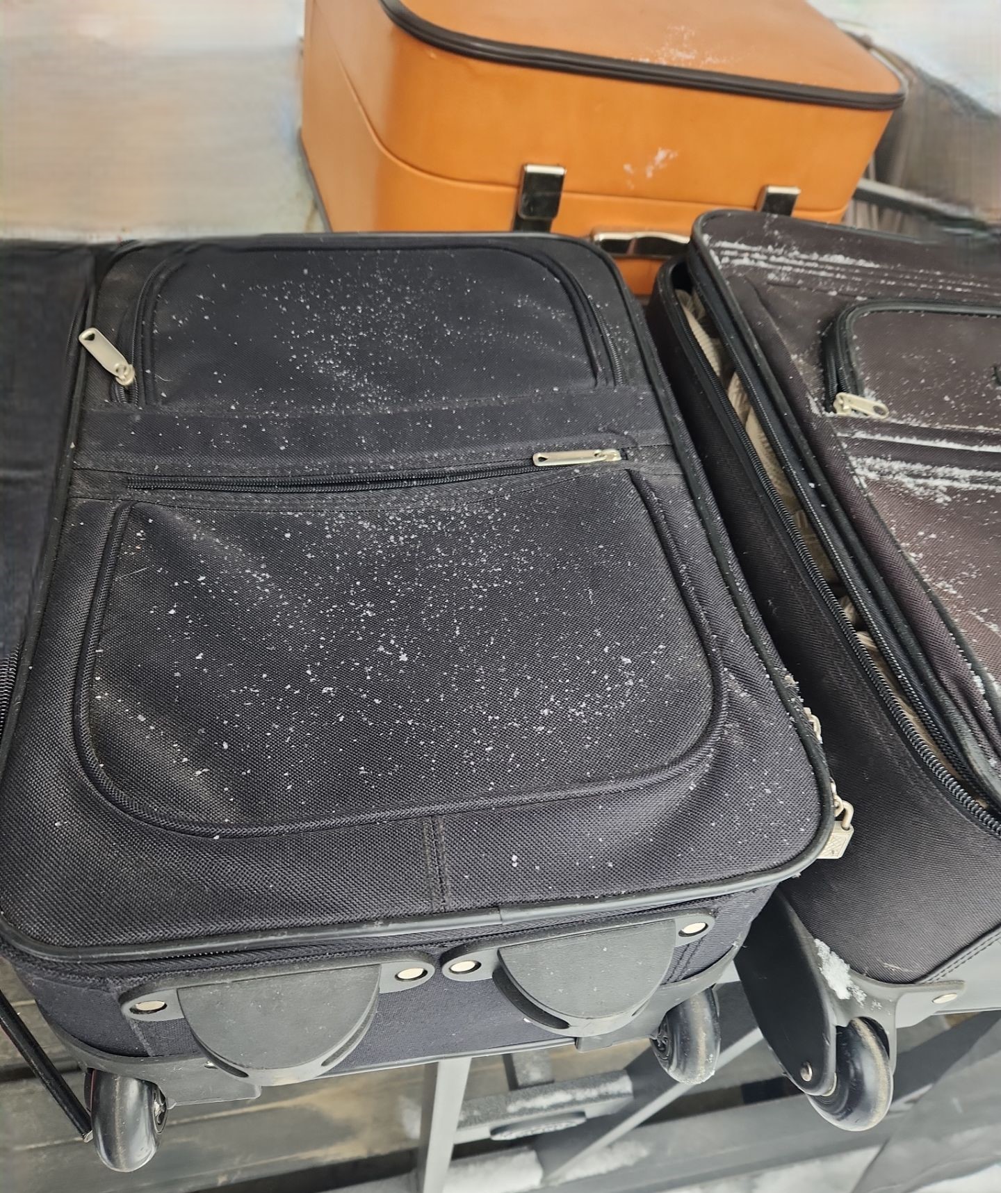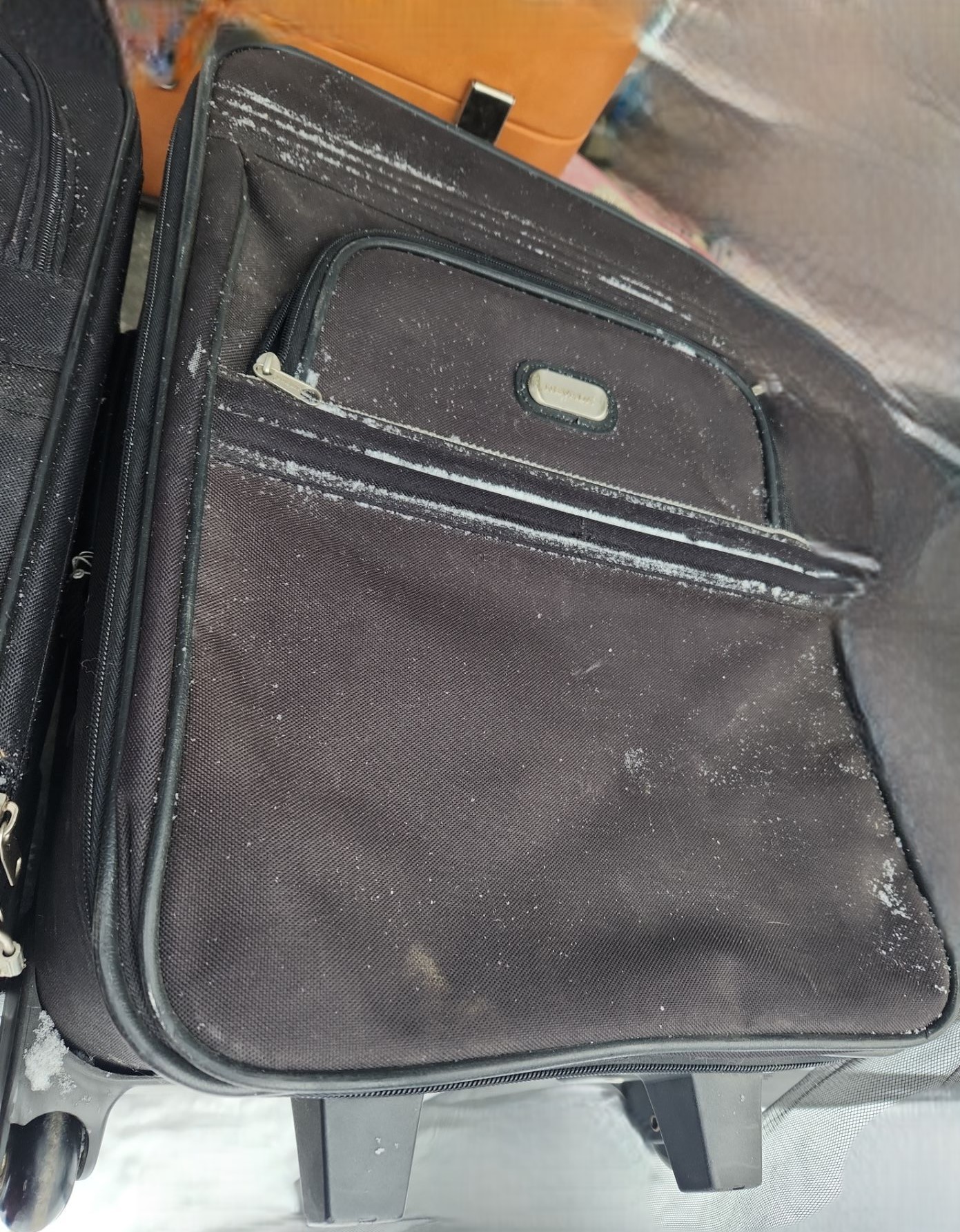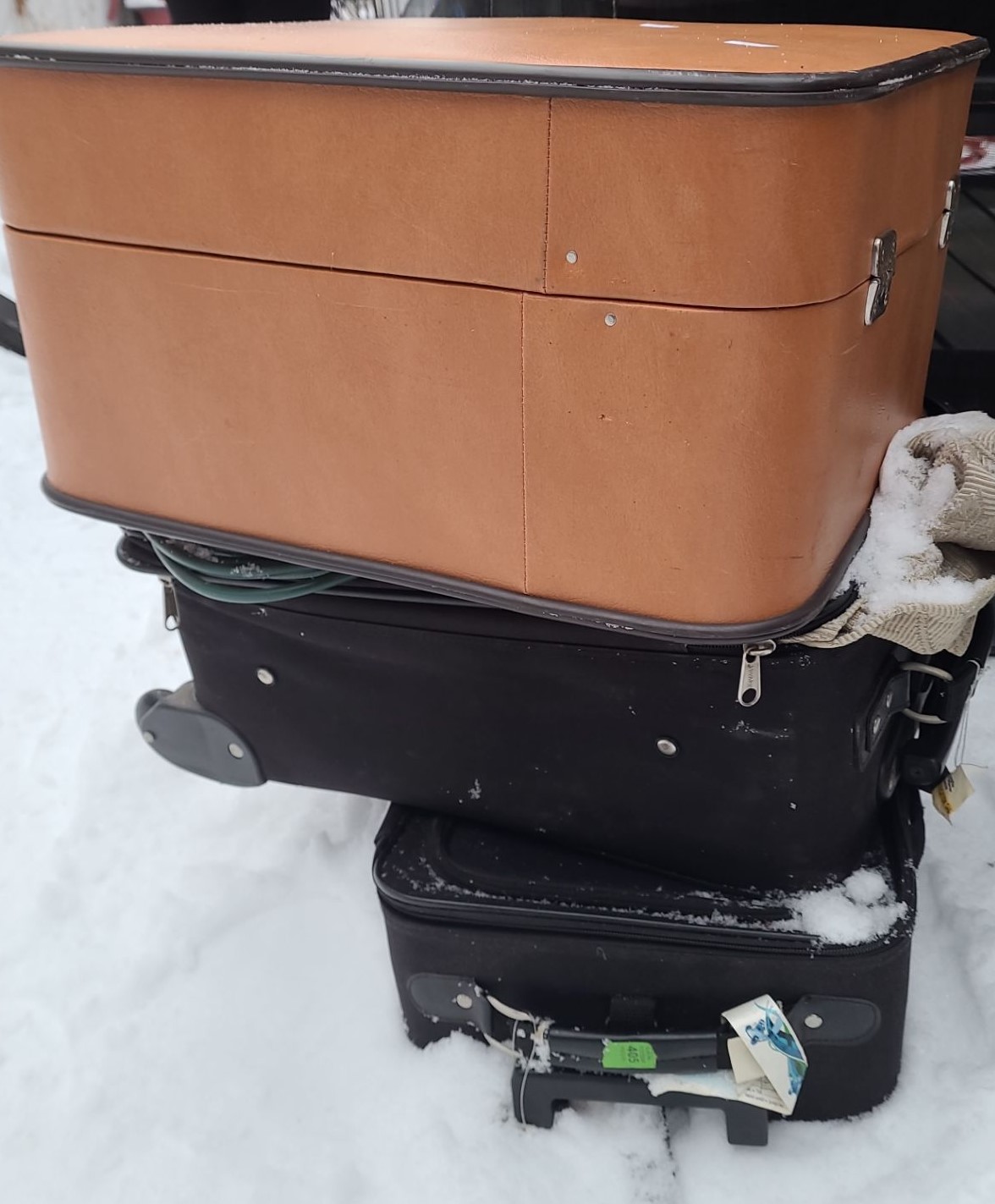 Set of Suitcases- Brown Vintage 18 L, 16 W, 10 D and 2 Rolling Black Carry On Bags