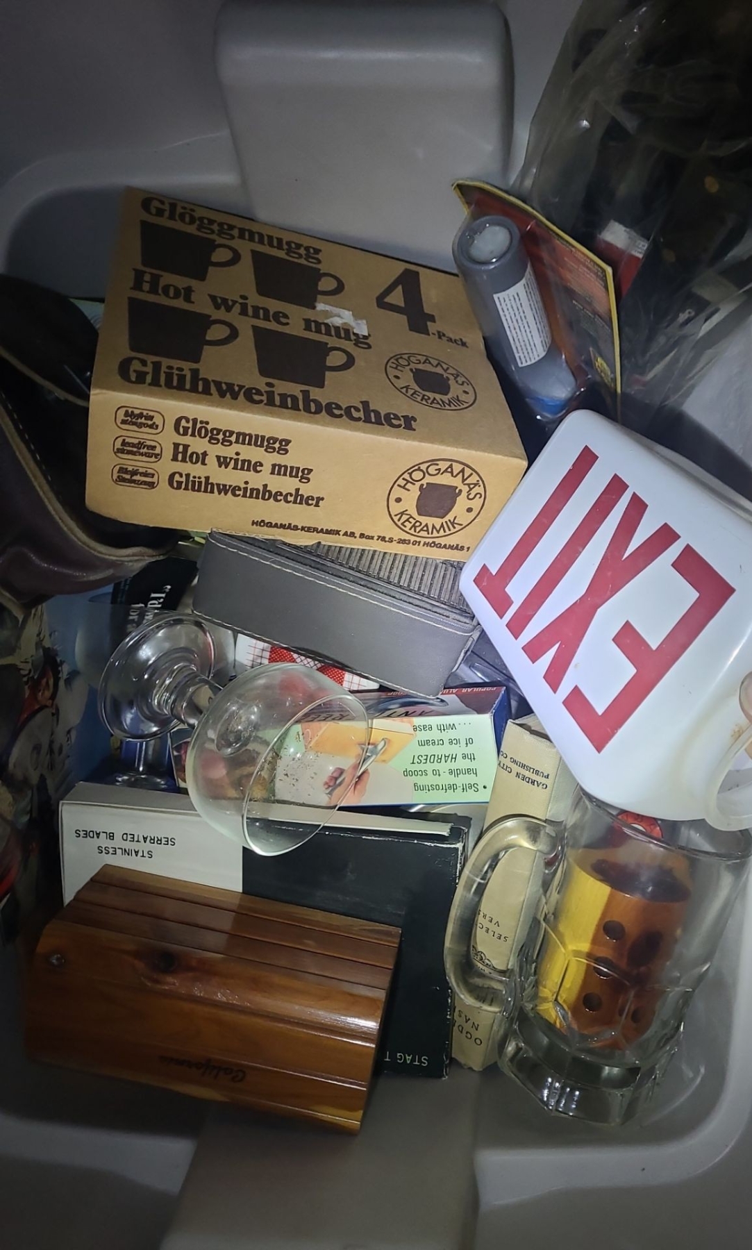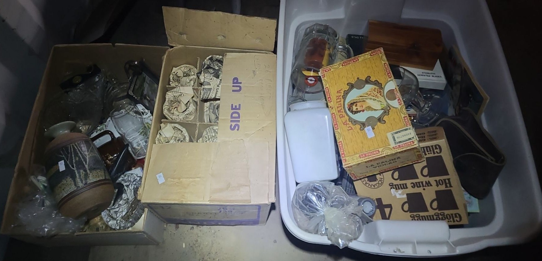 Several Boxes of Household Items and Decor Including: Drinkware, Stag Horn Knives