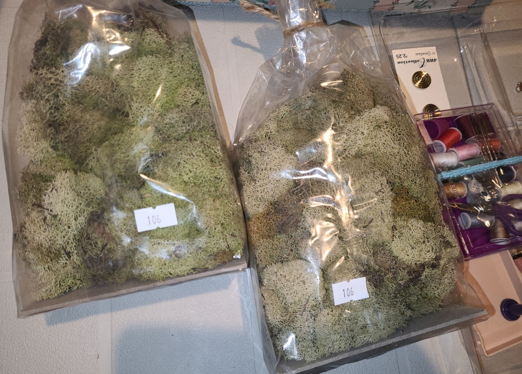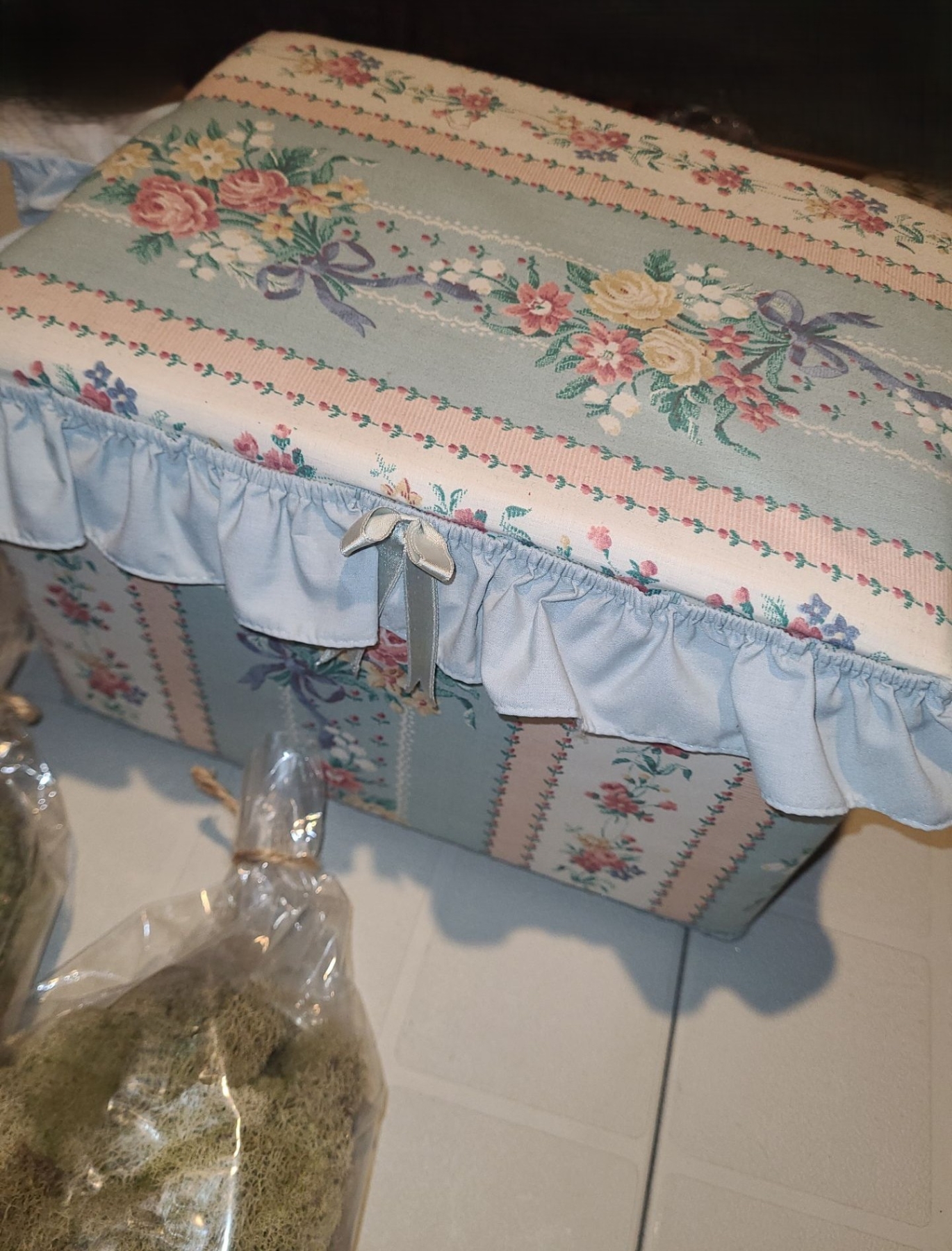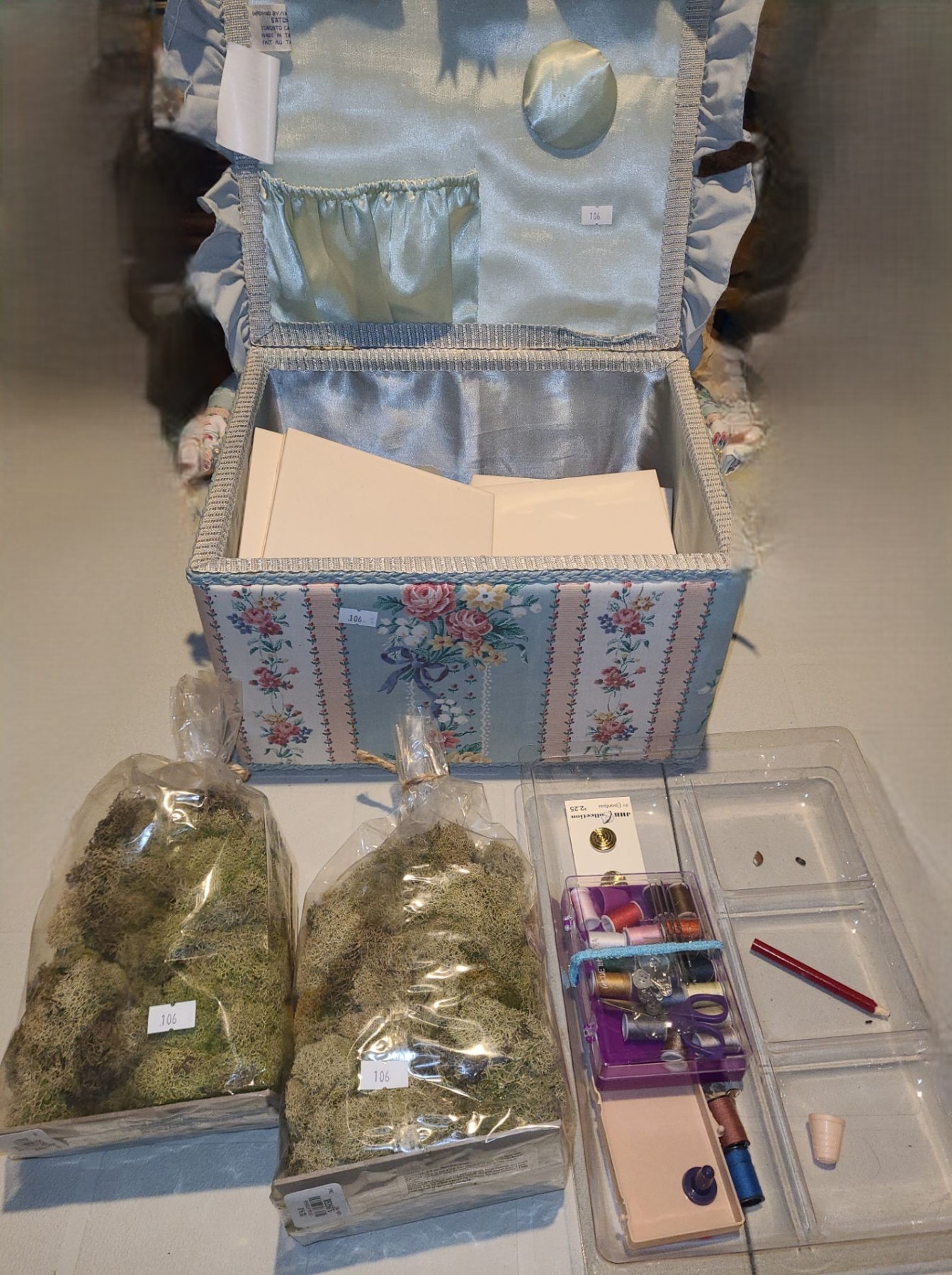 Sewing Basket 13 W, 9.5 D, 8 T, Contents and Artificial Moss Included