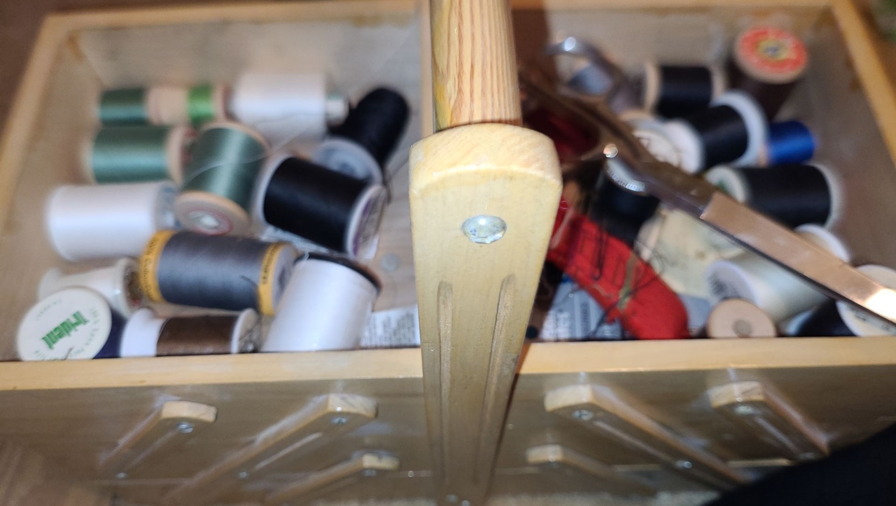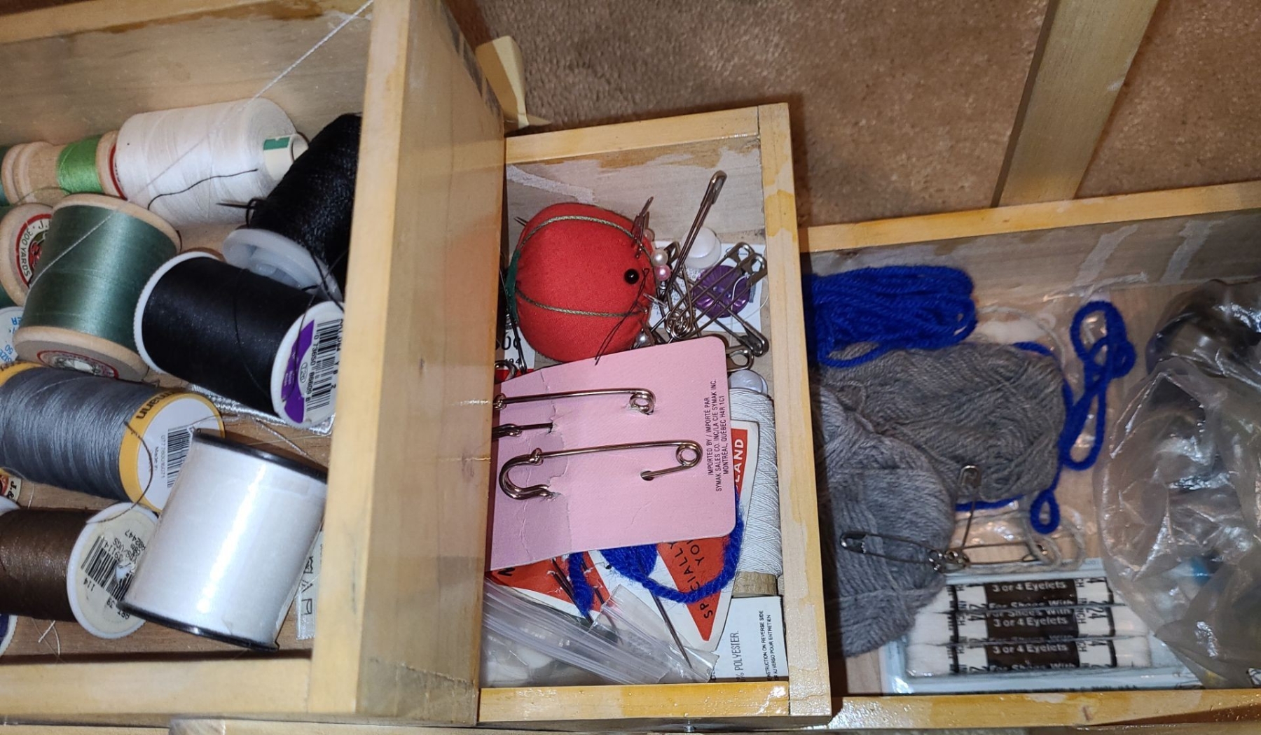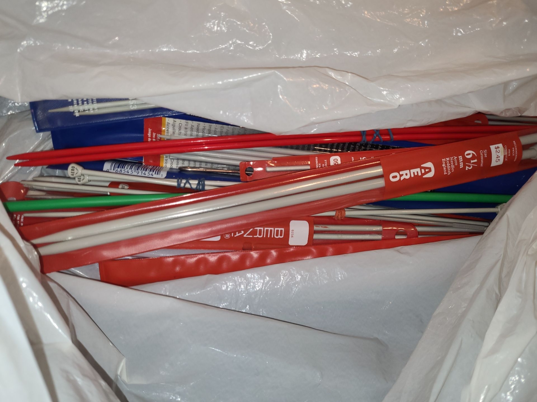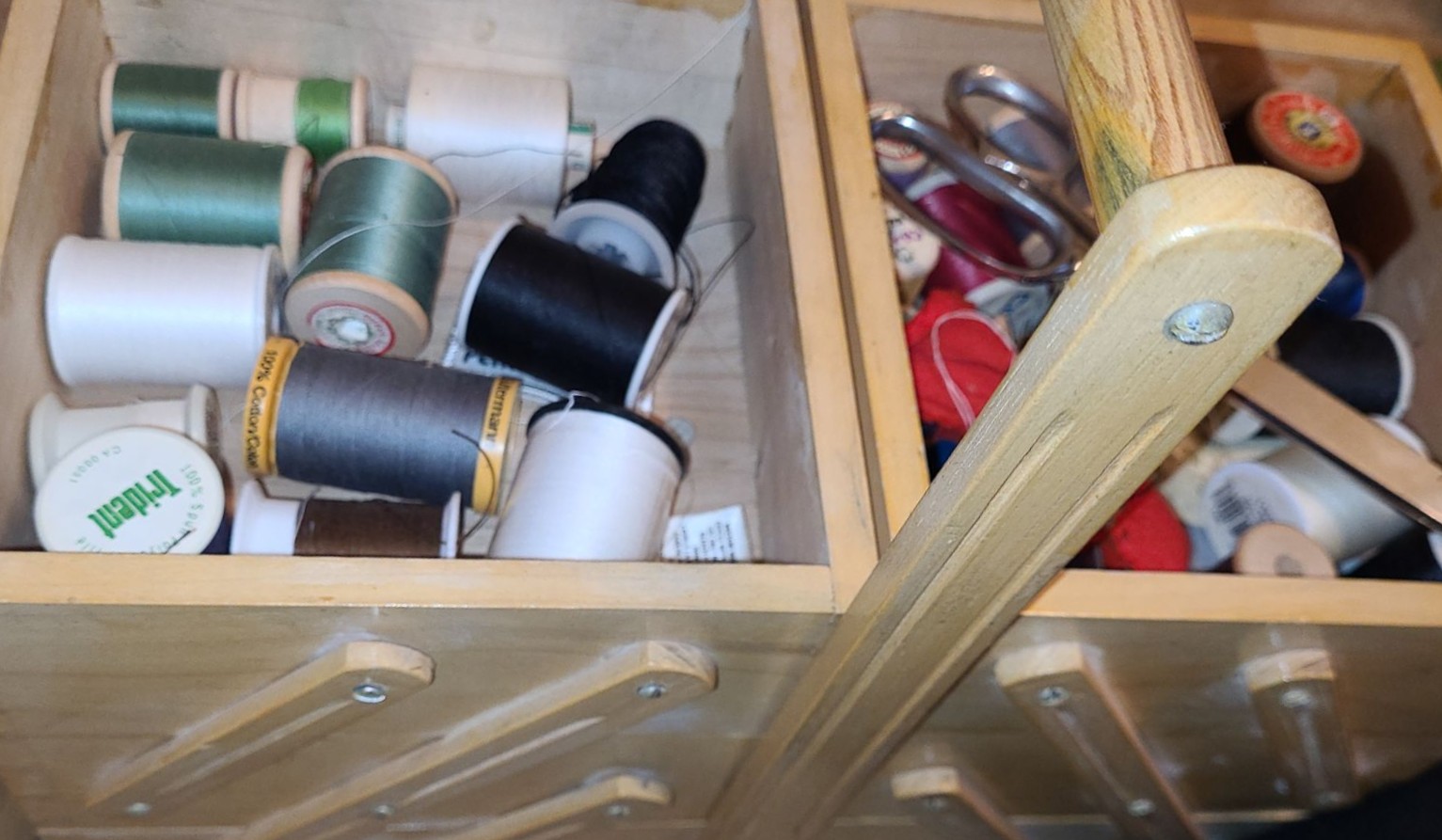 Sewing Basket 14.5 W, 7.5 D, 13 T w/ Handle Up, Fabric and Knitting Needles