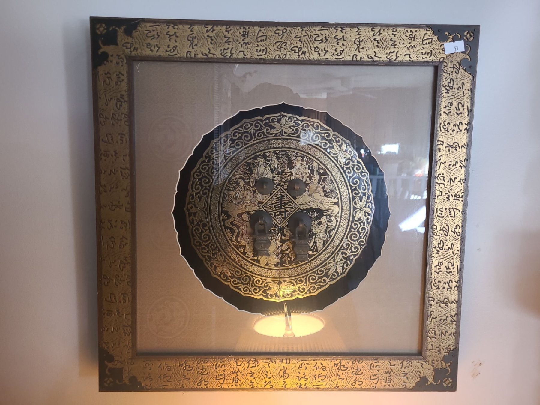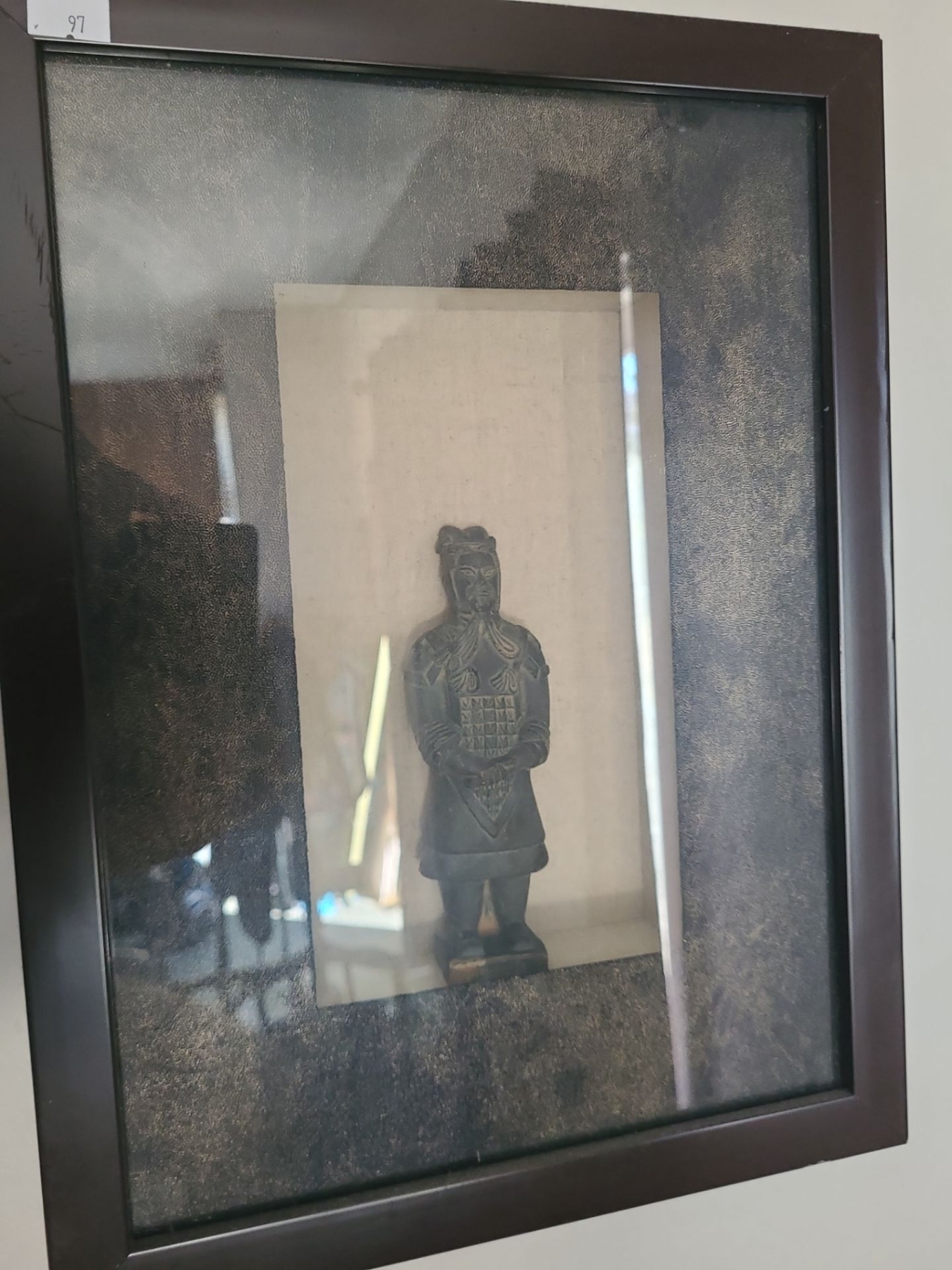 Shadowbox Asian Art: Locks 17 X 17, Terra Cotta Soldier 12 X 16