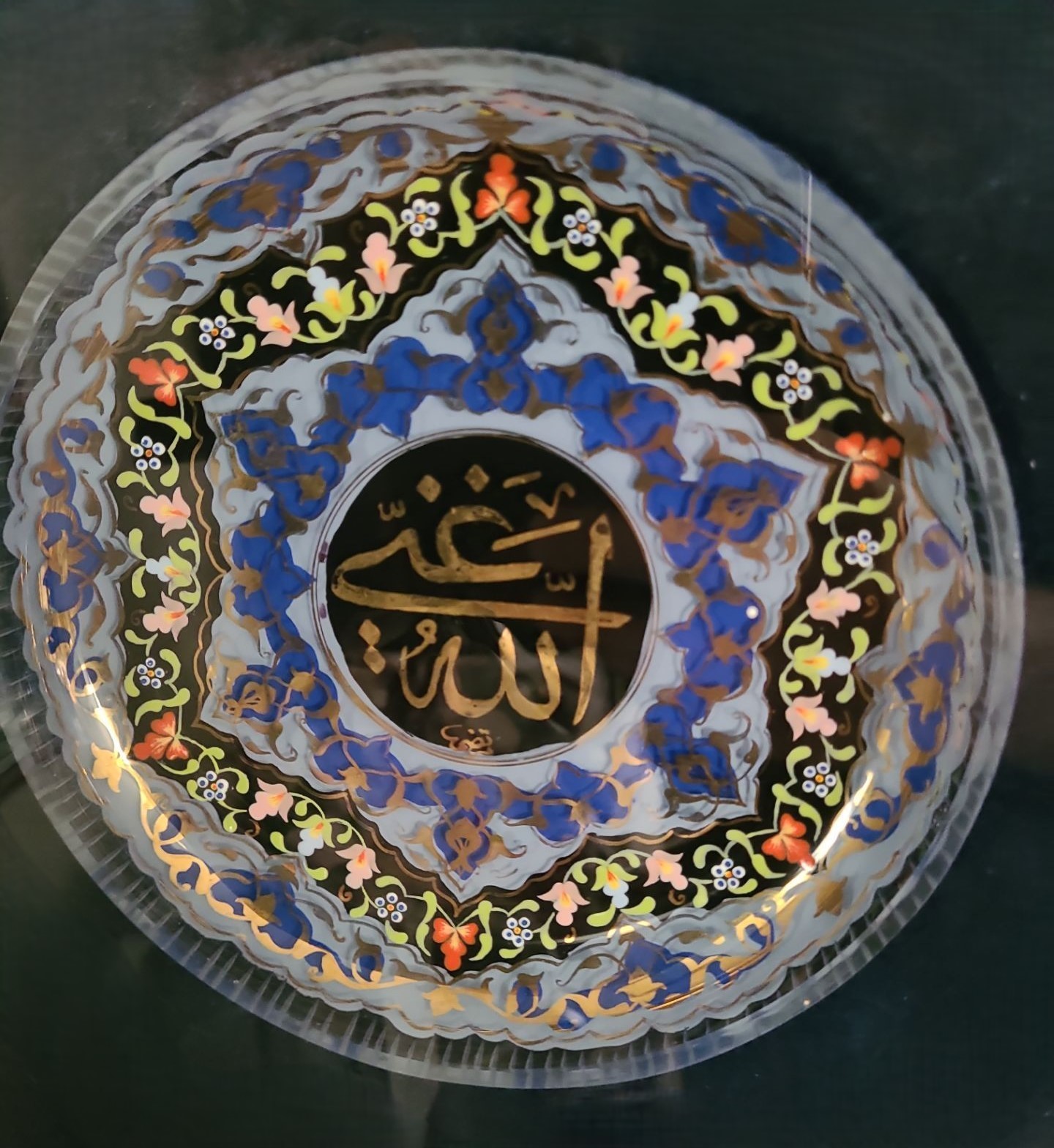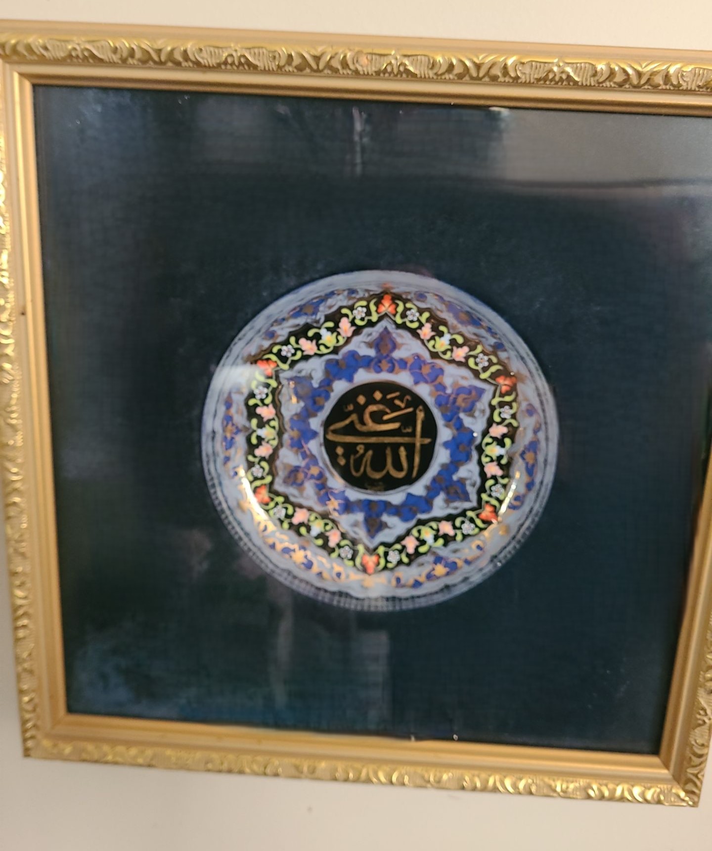 Shadowbox Framed Blue Plate w/ Inscribed Motif 14 X 14