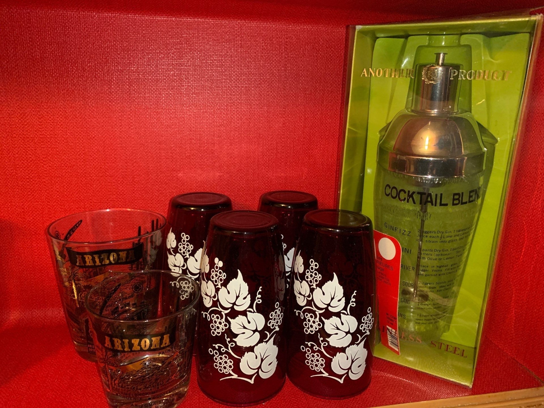 Shaken Not Stirred - Shaker/Strainer w/ Decorative Cocktail Glasses