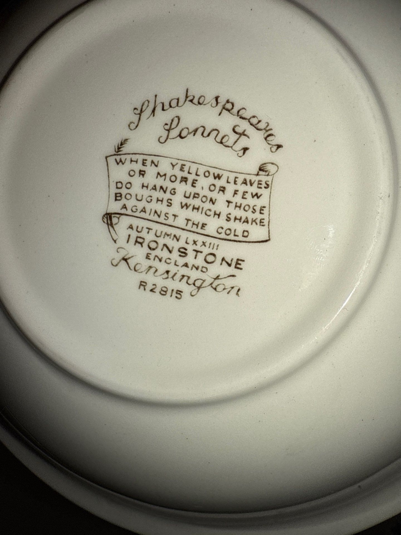 'Shakespeares Sonnets' Ironstone Dishware Set, Kensington England
