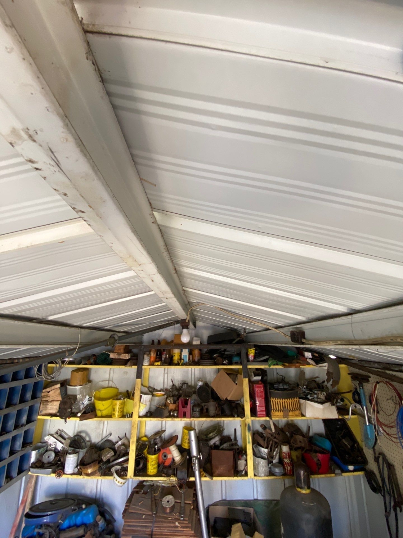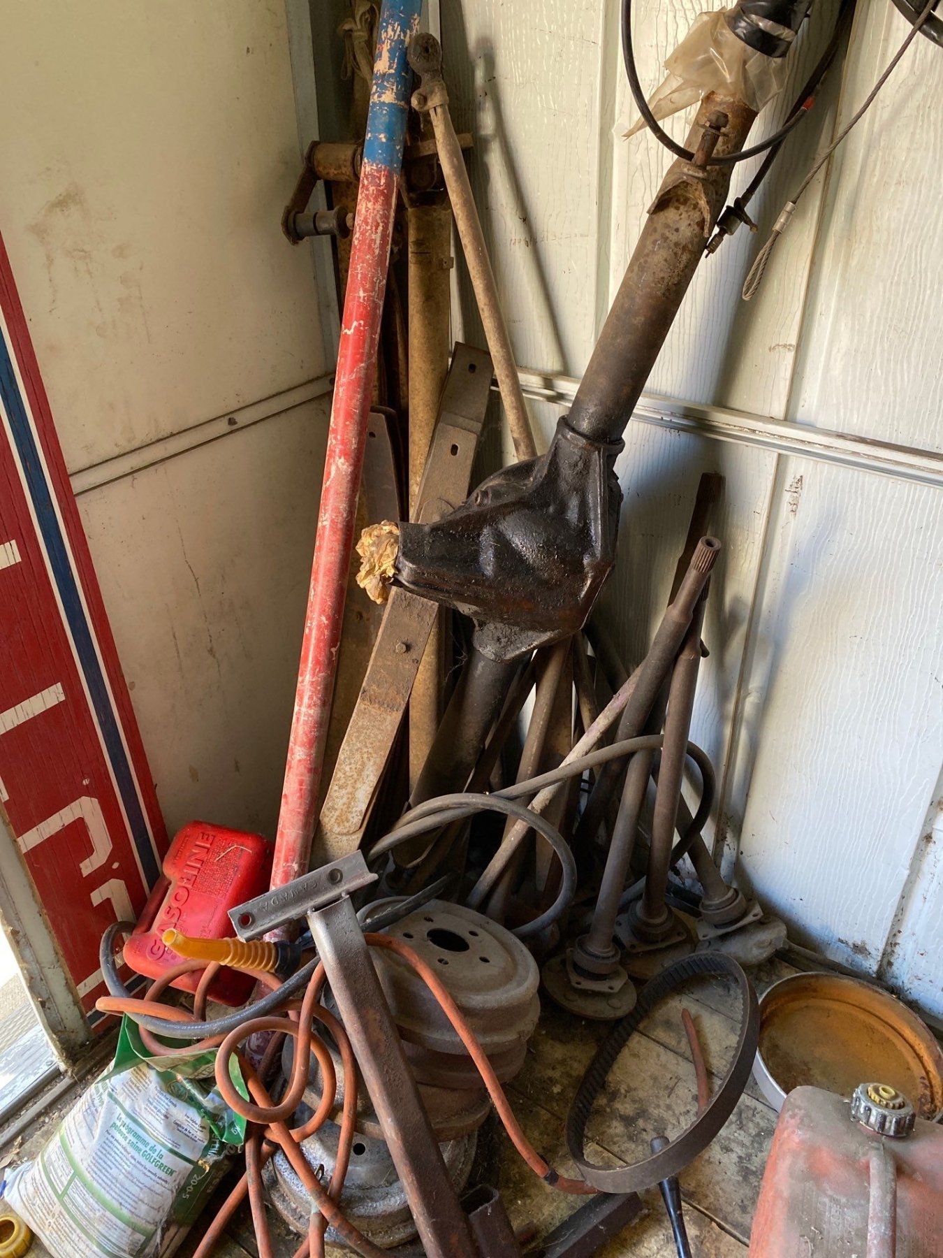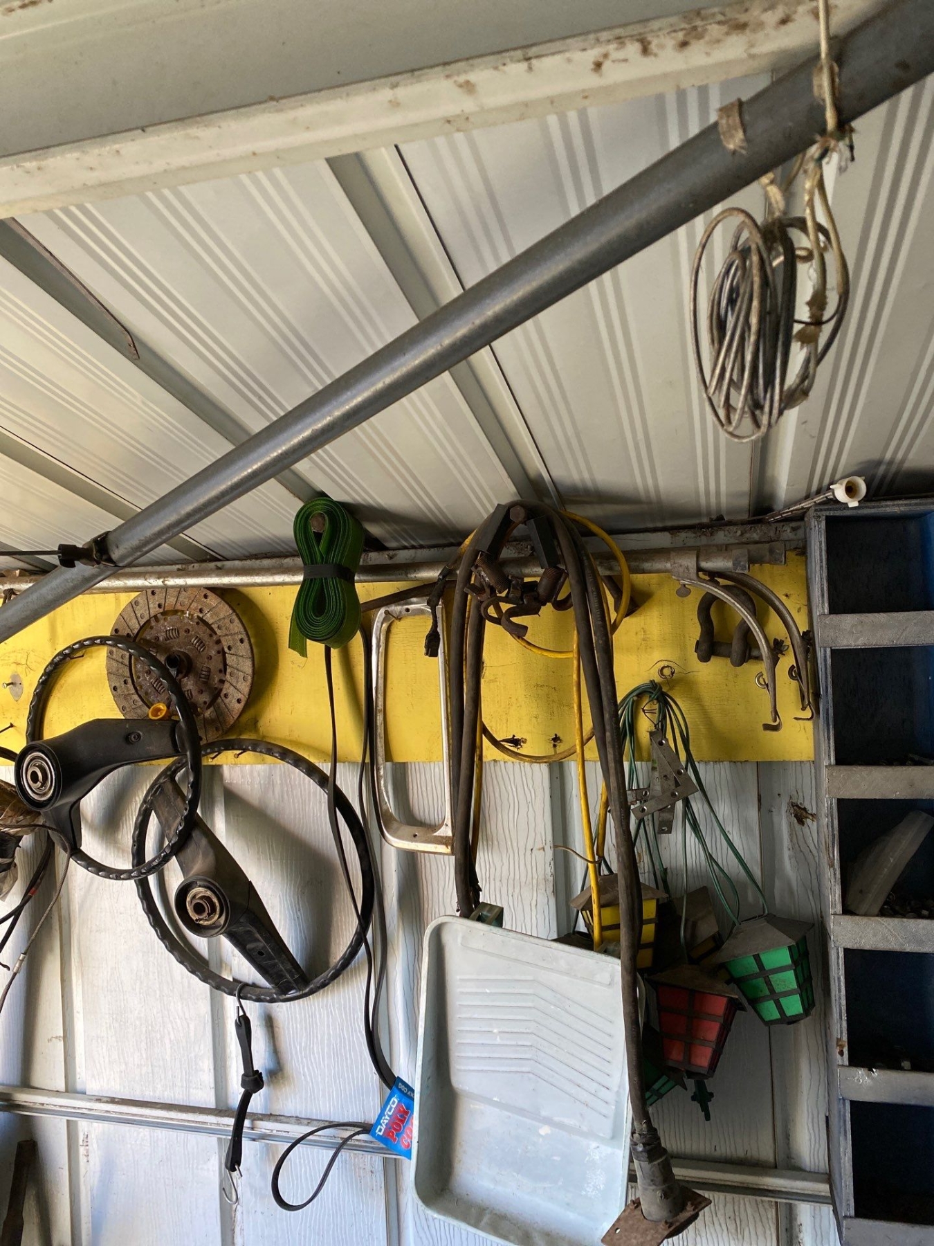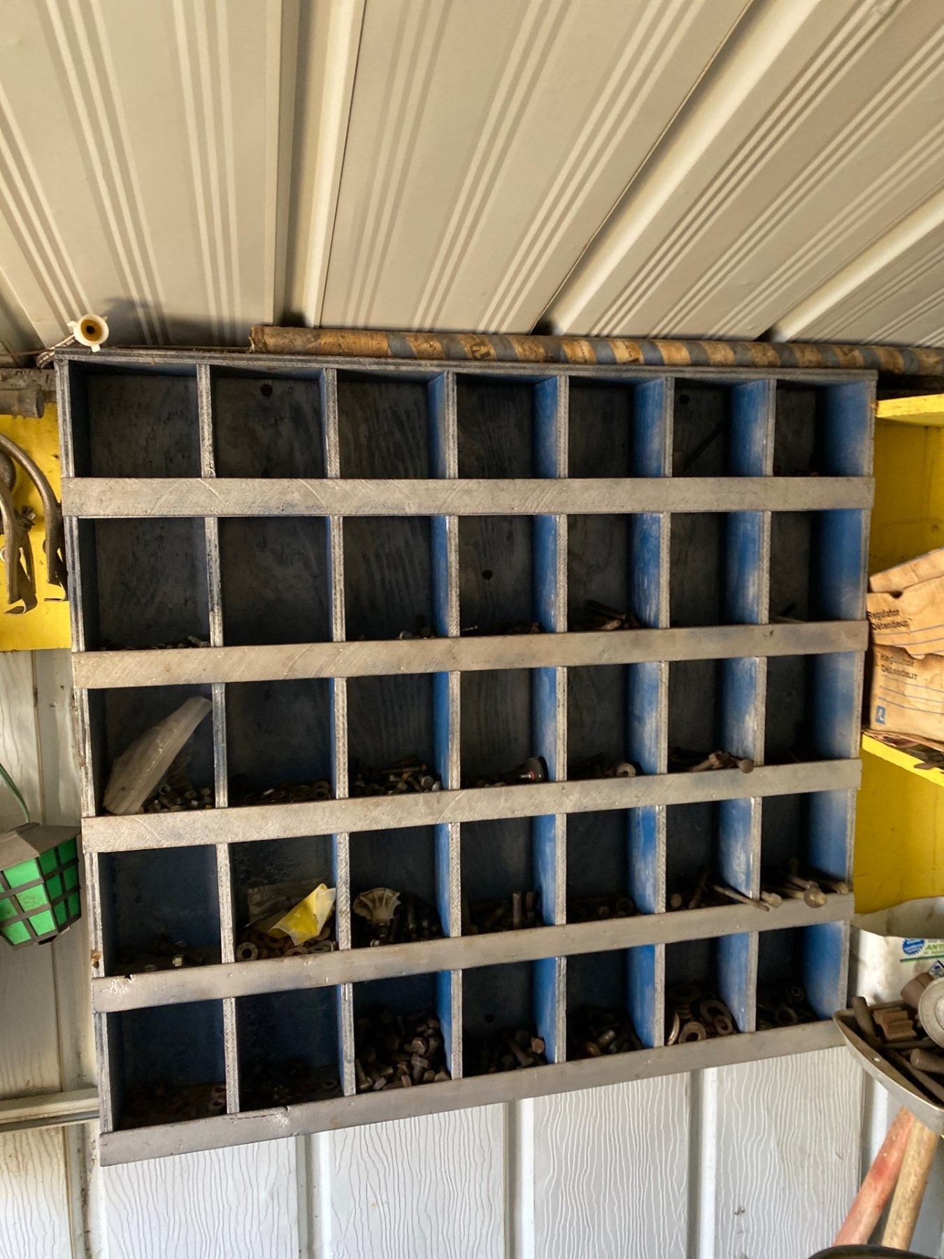Shed contents all contents on right side of wall back shelving all contents, and left side of shed a