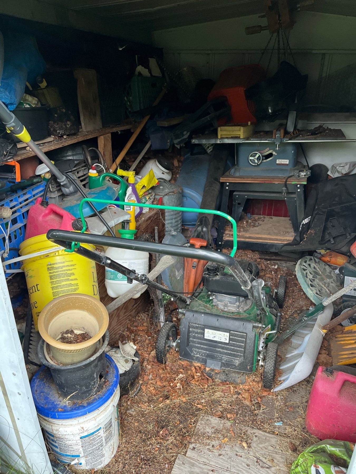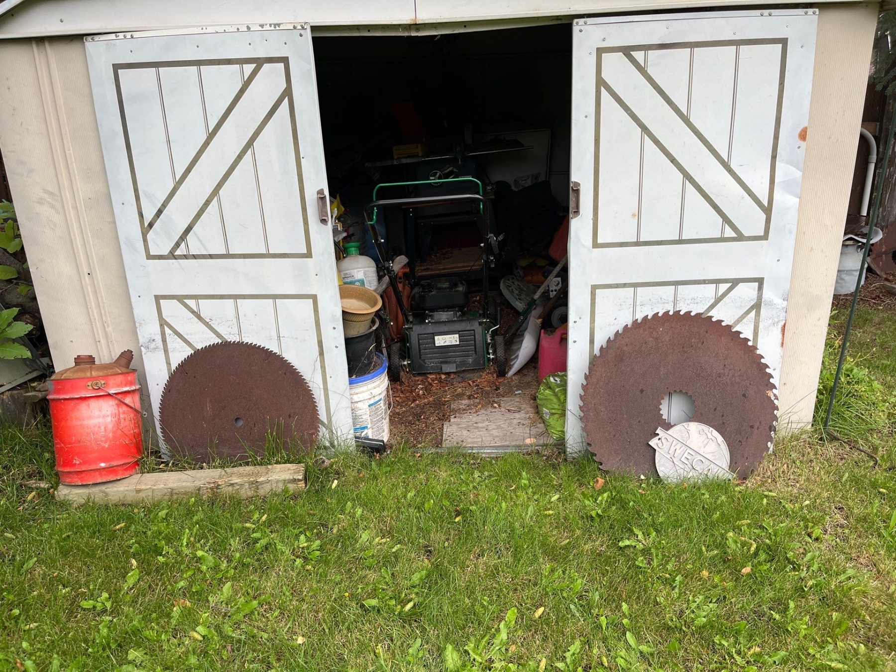 Shed with all contents, including snowblower, lawnmowers, table, saws, and all your gardening needs must take everything in the shed shed included if you want it