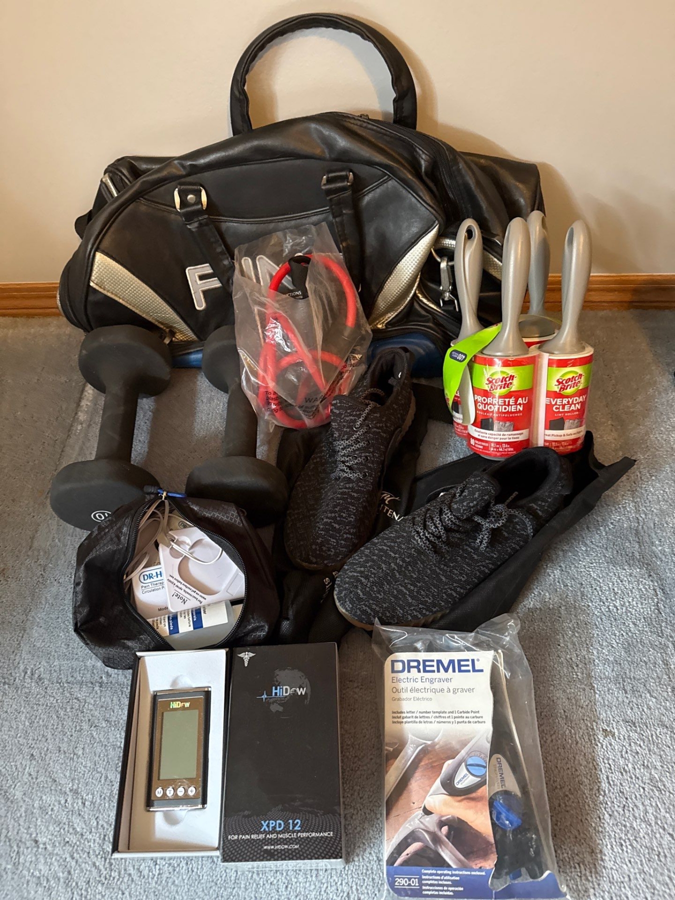 Shoes (39), Weights, Jump Rope, Engraver Dremel, Pain Relief XPD 12, Dr Ho. and More!