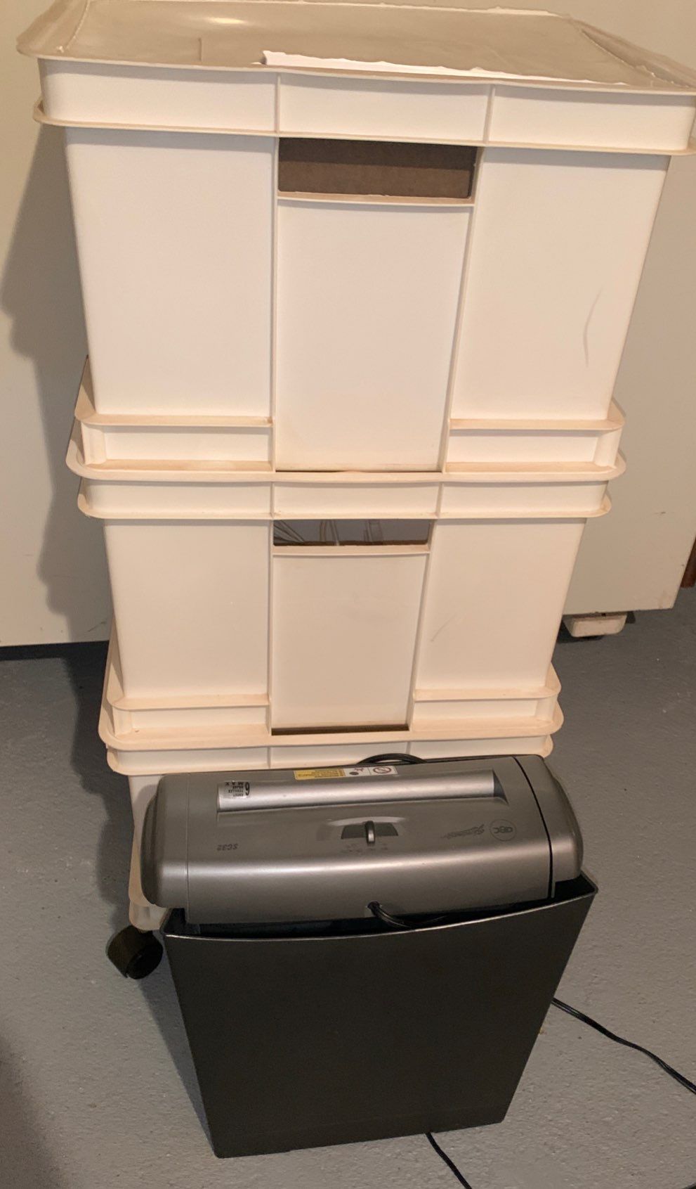 Shredding and Filing Bins (17W, 14D, 34T); GBC Shred Master (16T)