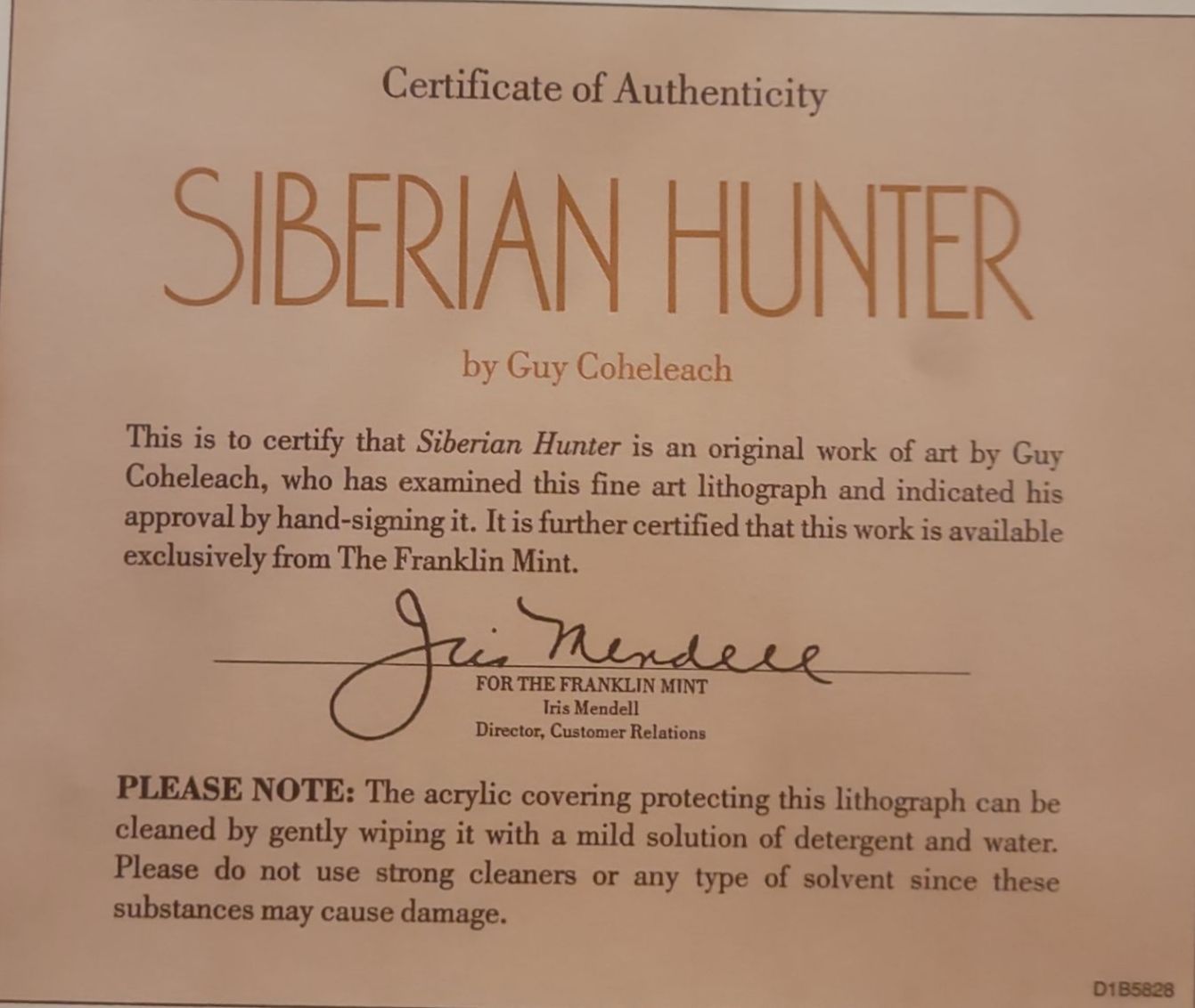 "Siberian Hunter" by Guy Coheleach Fine Art Lithiograph Certified Authentic