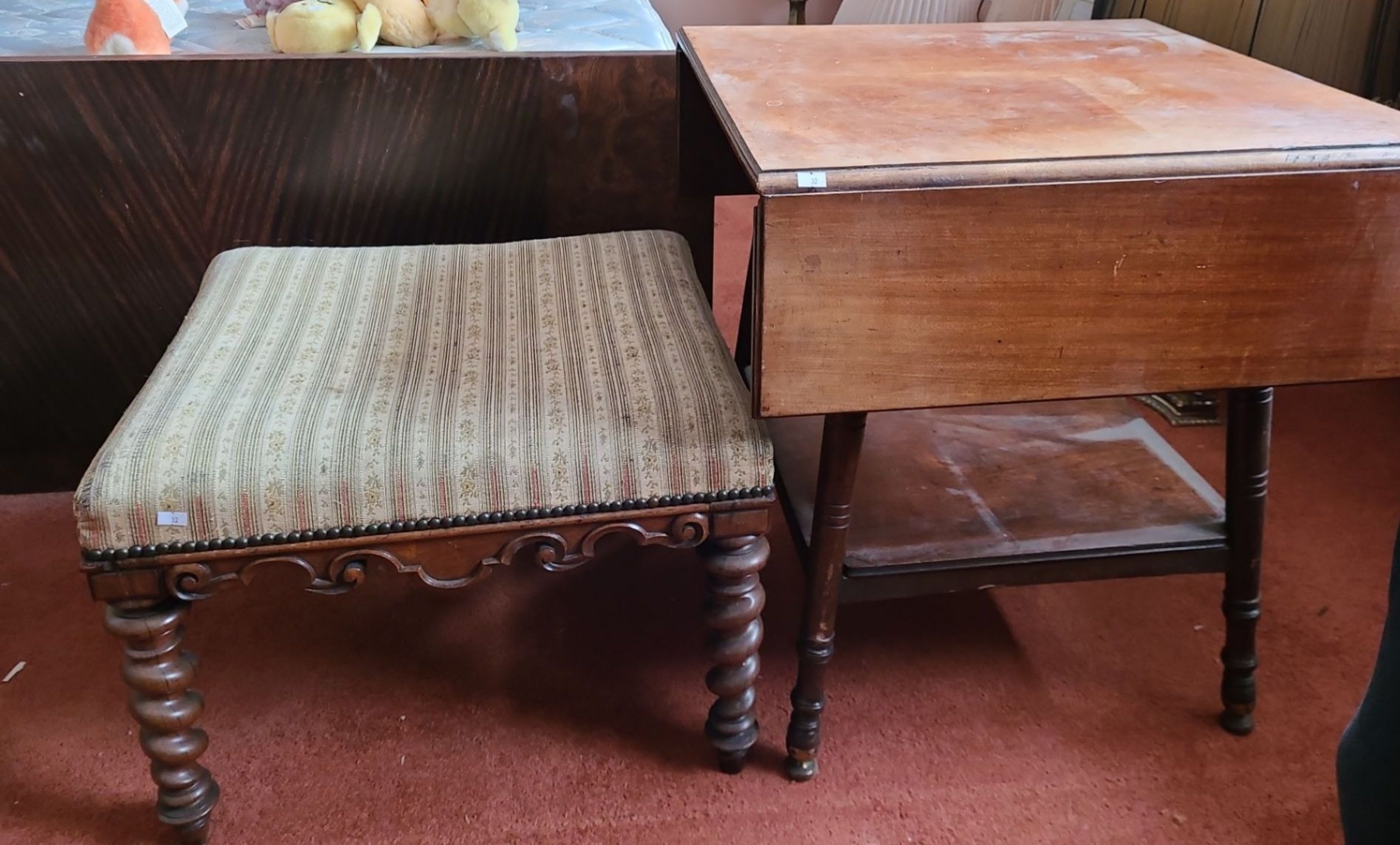 Side Flap Table with Shelf- 37 L opened, 27 T, 24 W and Carved Wood Footstool 22 L, 20 W, 16 T