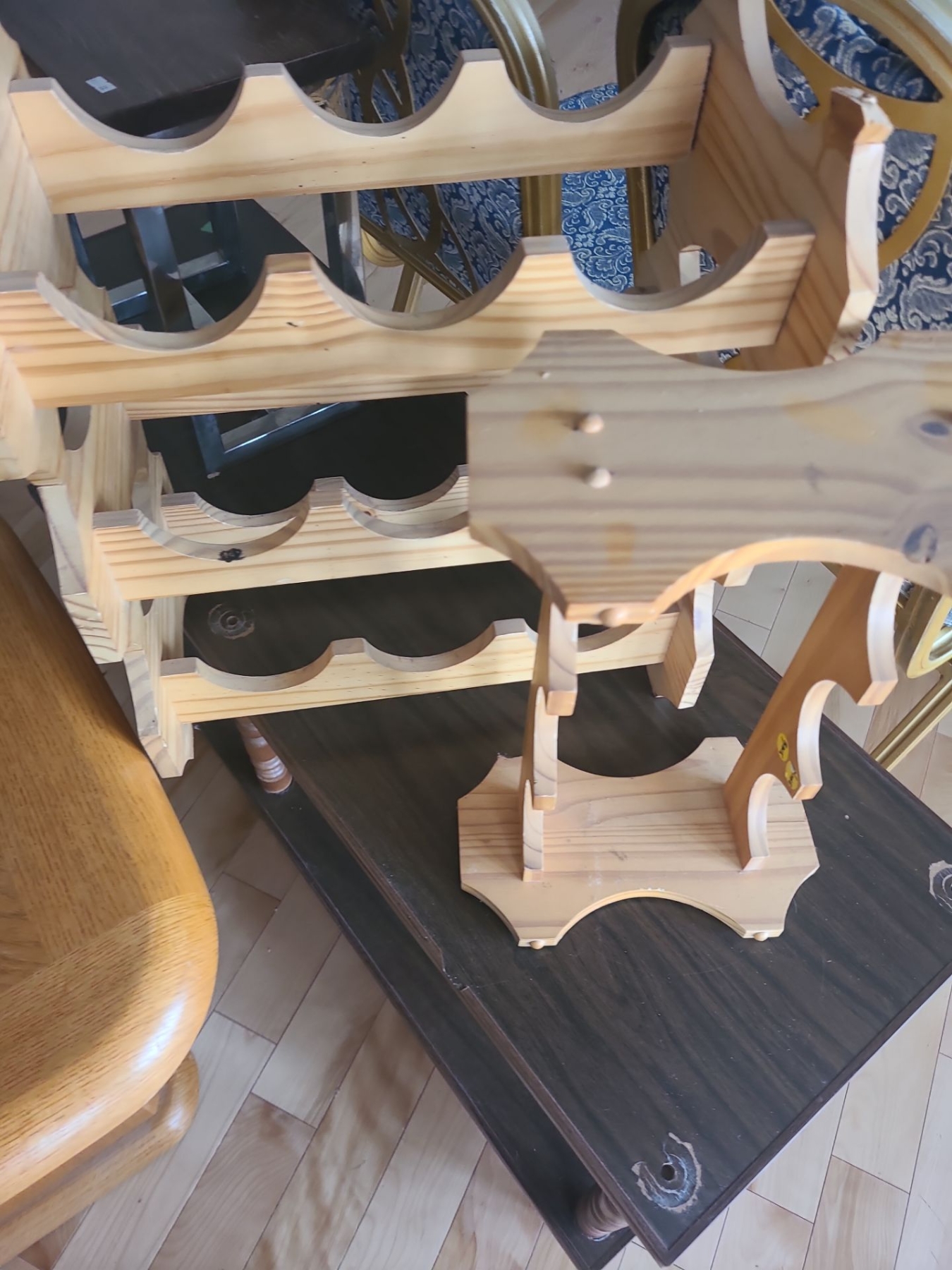 Shelving is Missing Pieces/ No Additional Shelf and Wine Rack Broken as Shown, Some Scuffs and Scratches