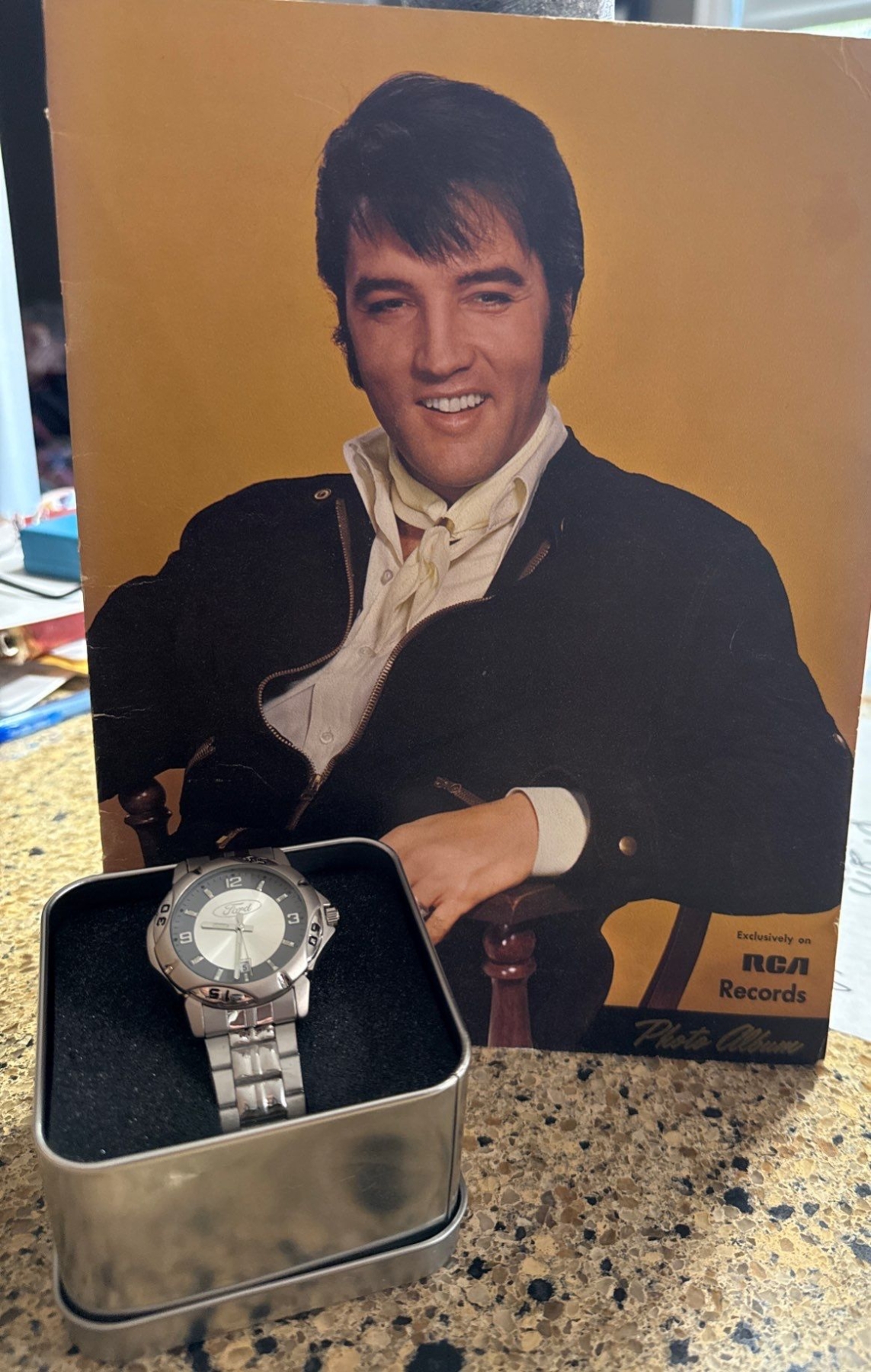 Signed Elvis Prestley RCA Records Photo Album w/ Ford Time Piece