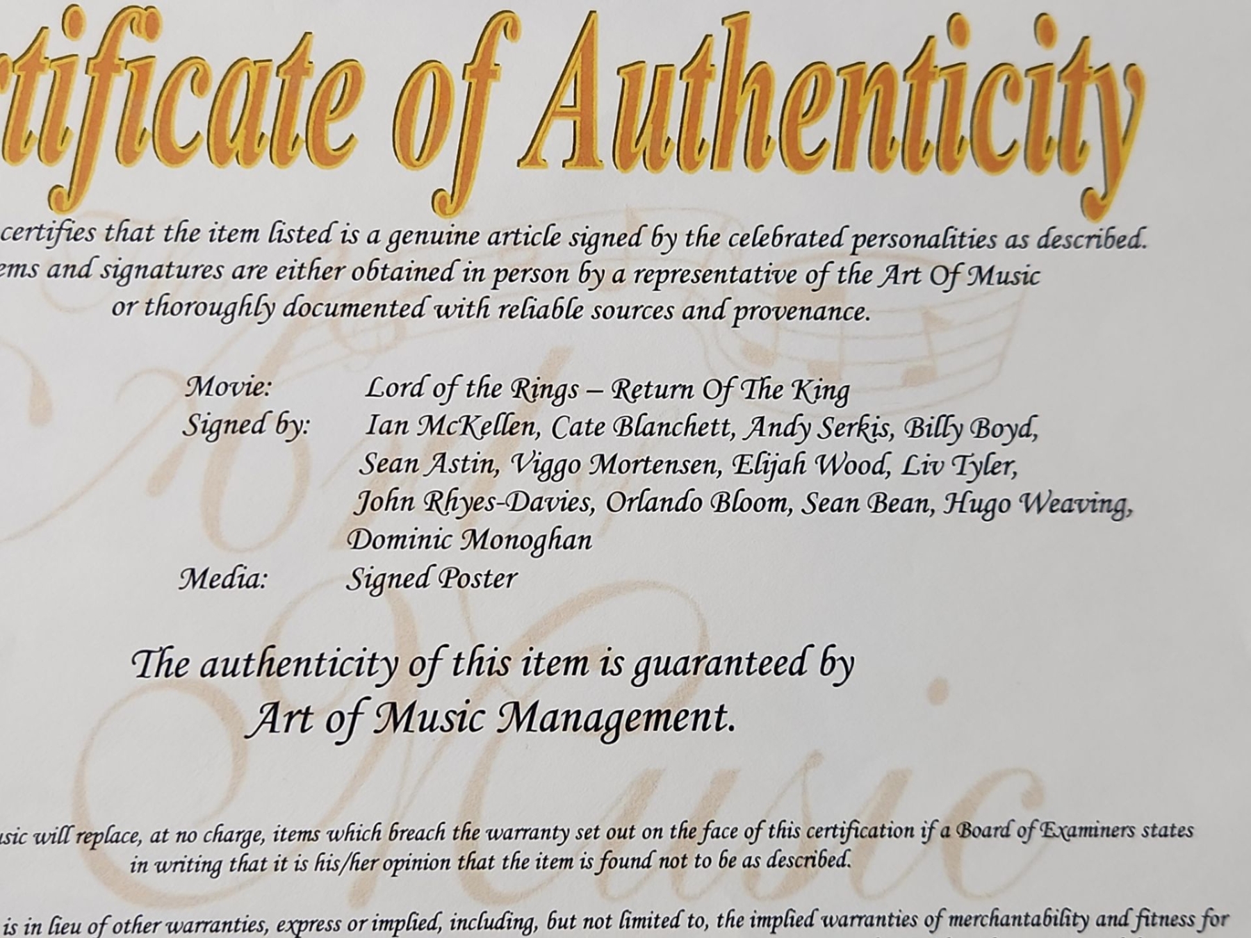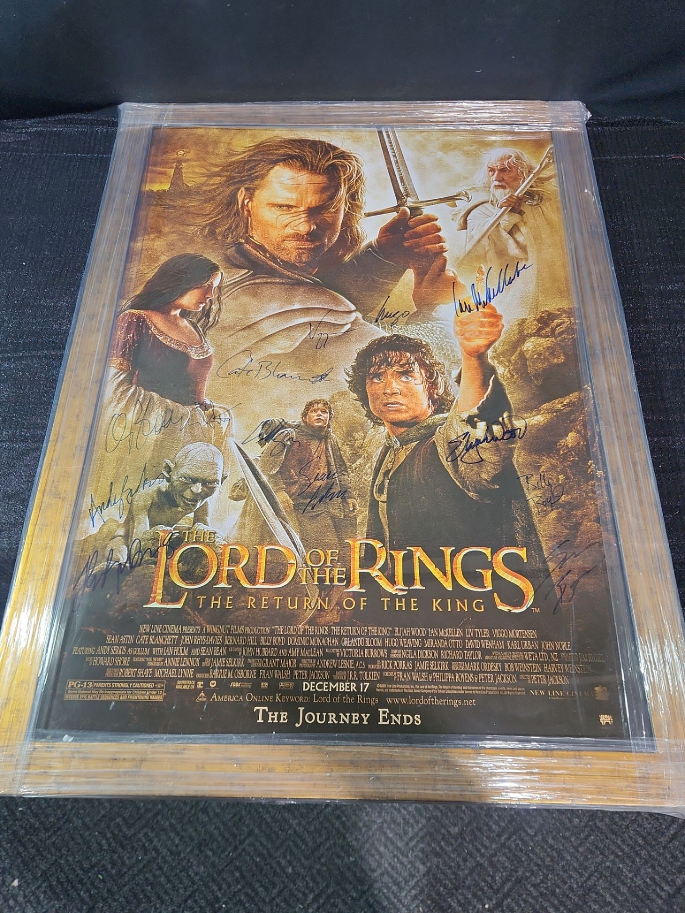 This is a cast signed movie poster from LORD OF THE RINGS - Return of the King. Comes with certificate of authenticity! Amazing present for a Hobbit lover in your life :)
