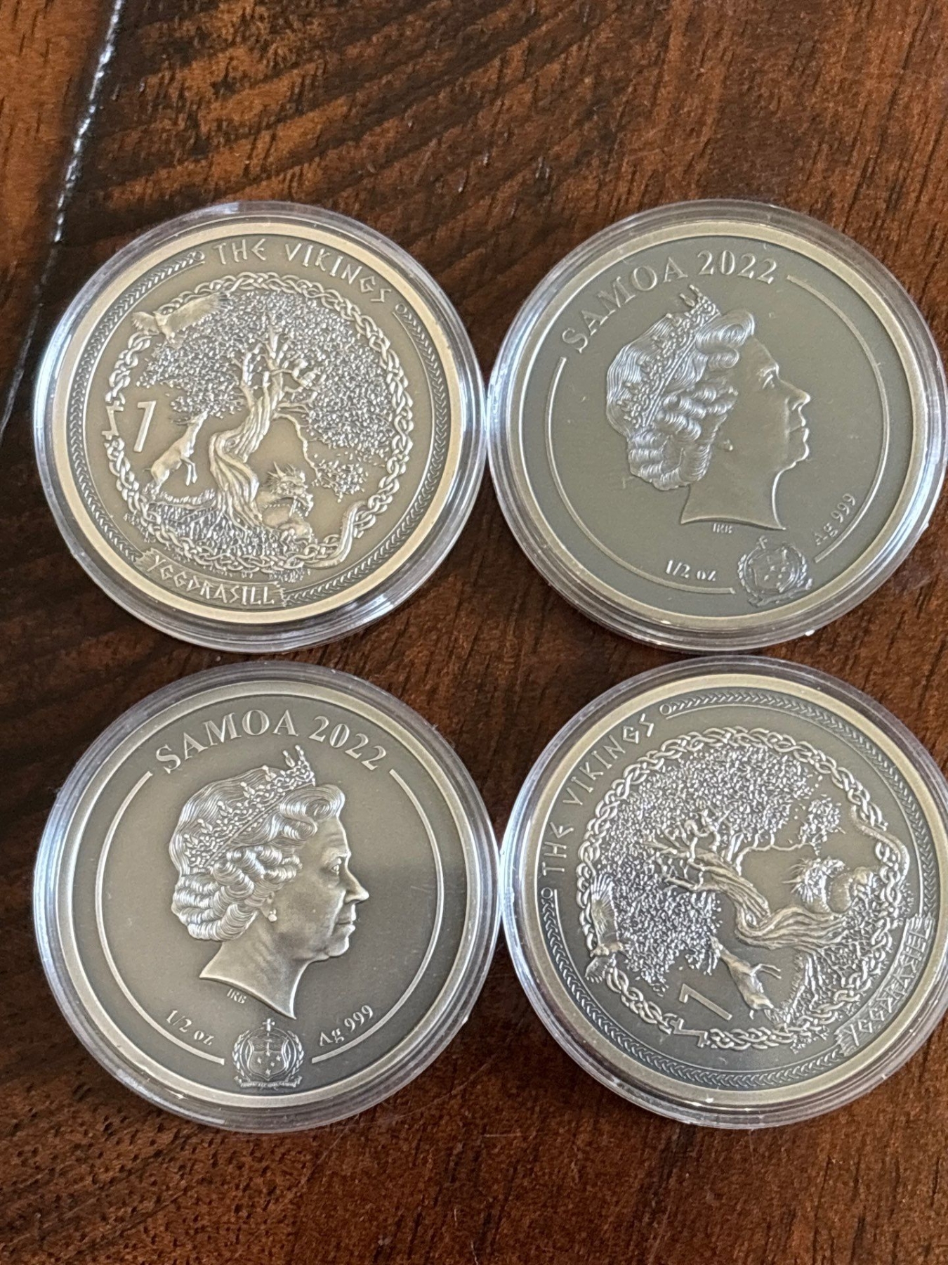 Silver Half Ounce 2022 Vikings Samoa 1/2 oz silver X 4 2 0z total