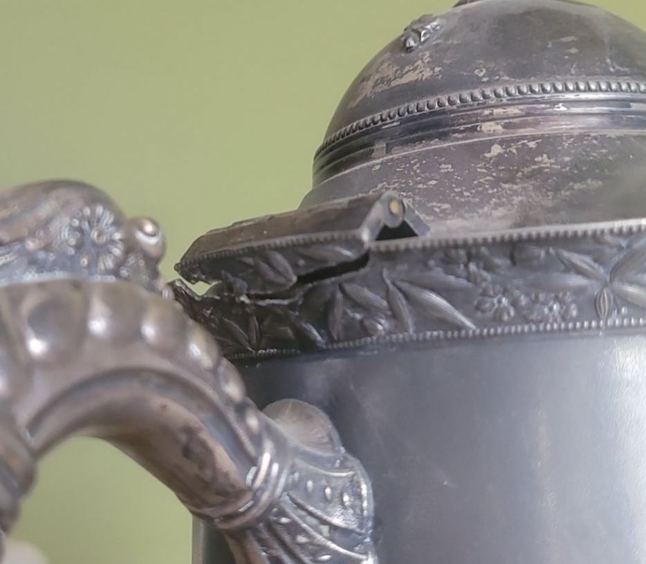 Silver Plated Brass Teapot (Hinge Needs Repairs), Ceramic Elephant, and Metal Lipstick Holder