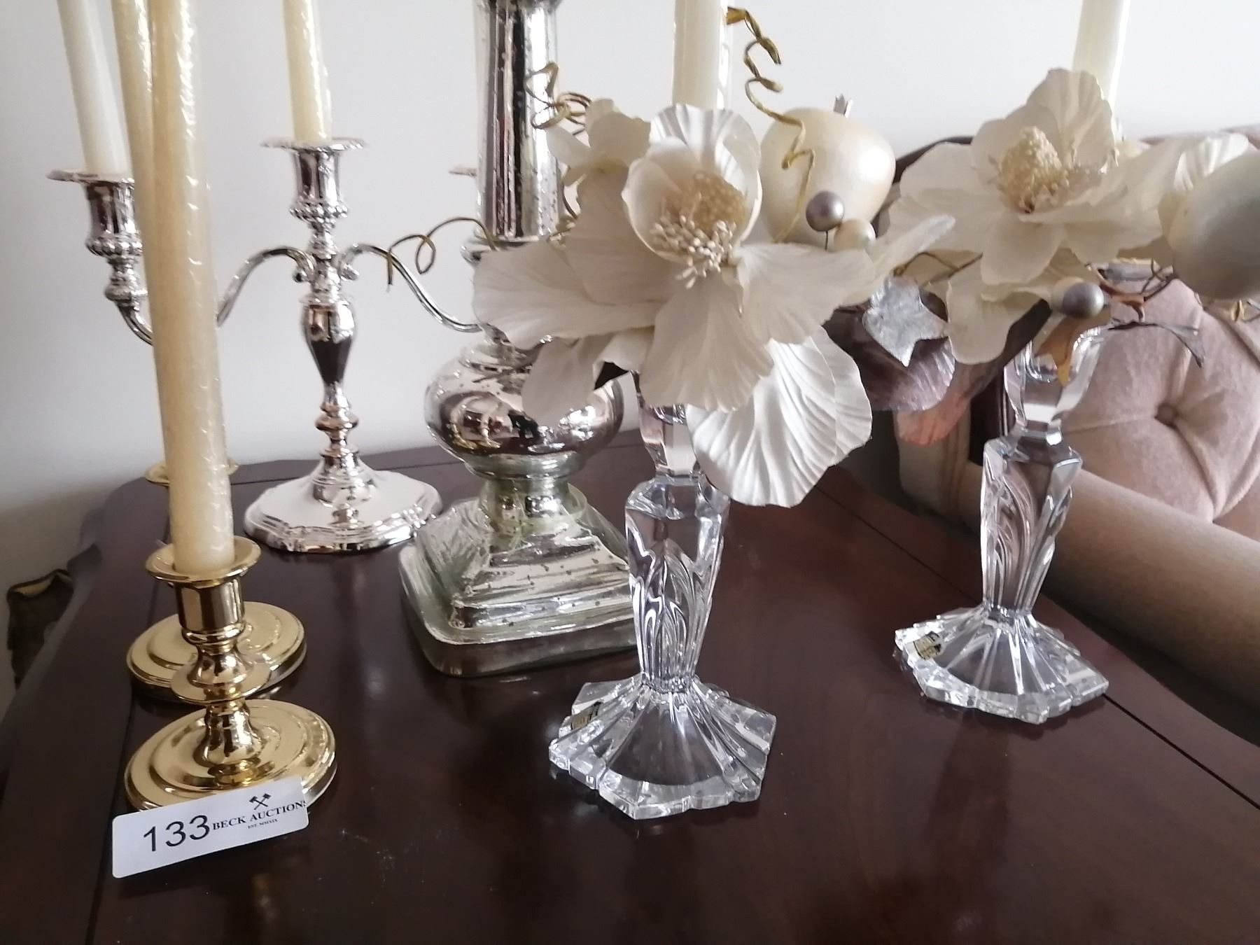 Silverplate Candelabra, Brass and Crystal Candleholders, and More!