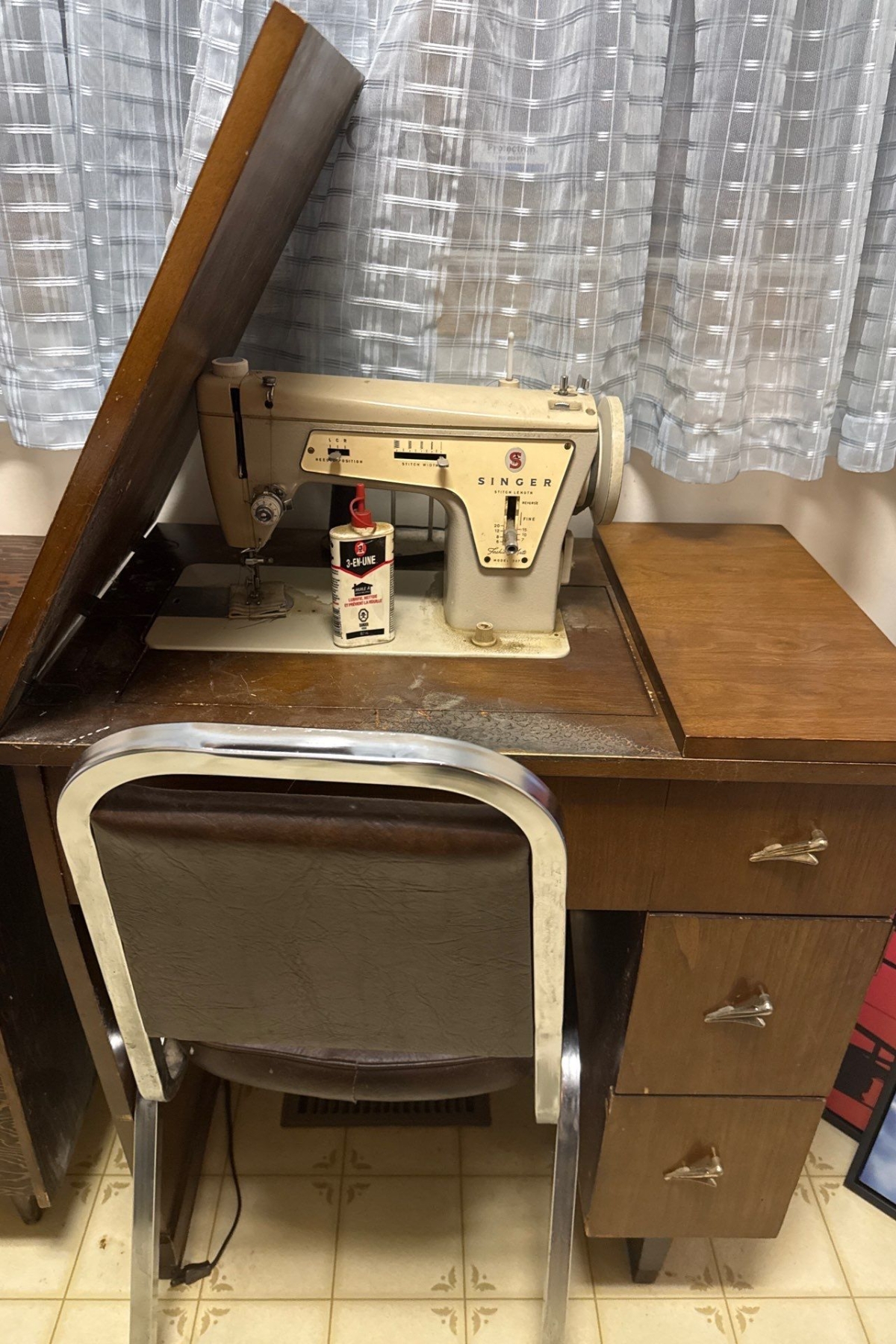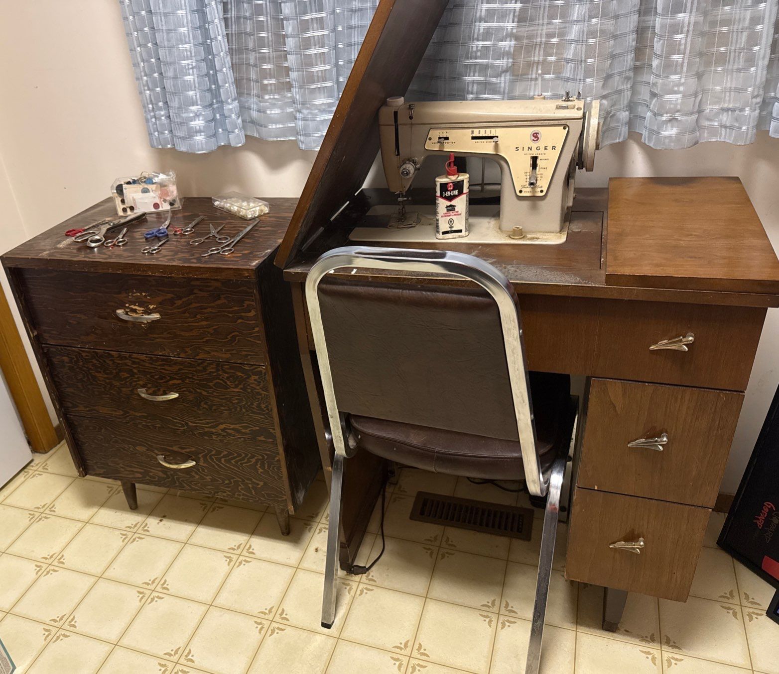 Singer Sewing Machine w/ Side Dresser Full Of Sewing Supplies