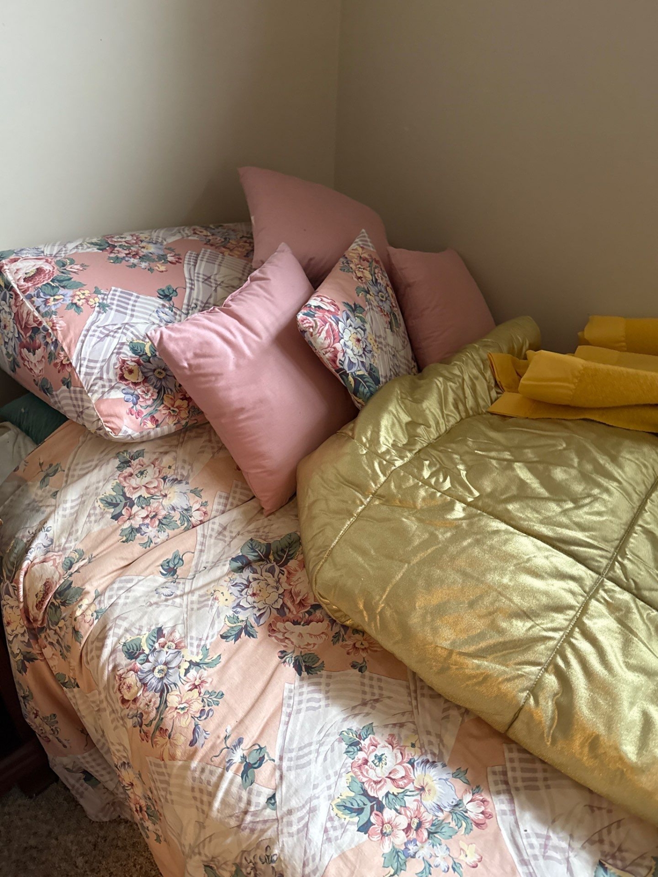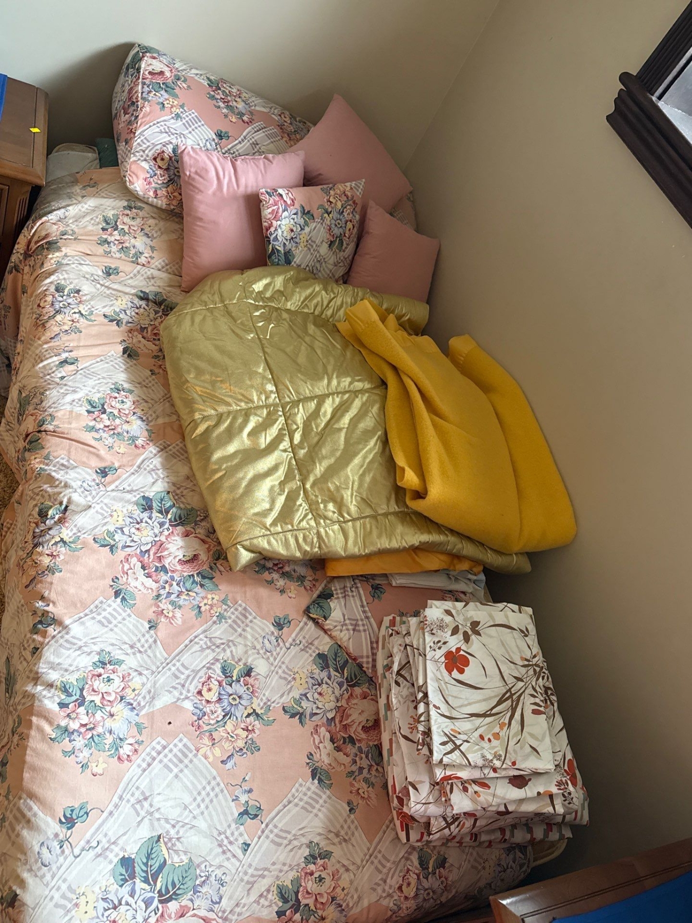 Single Bed Frame, Box Spring, Mattress w/ Linens