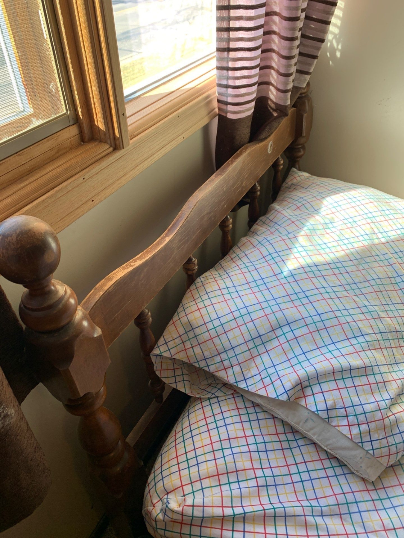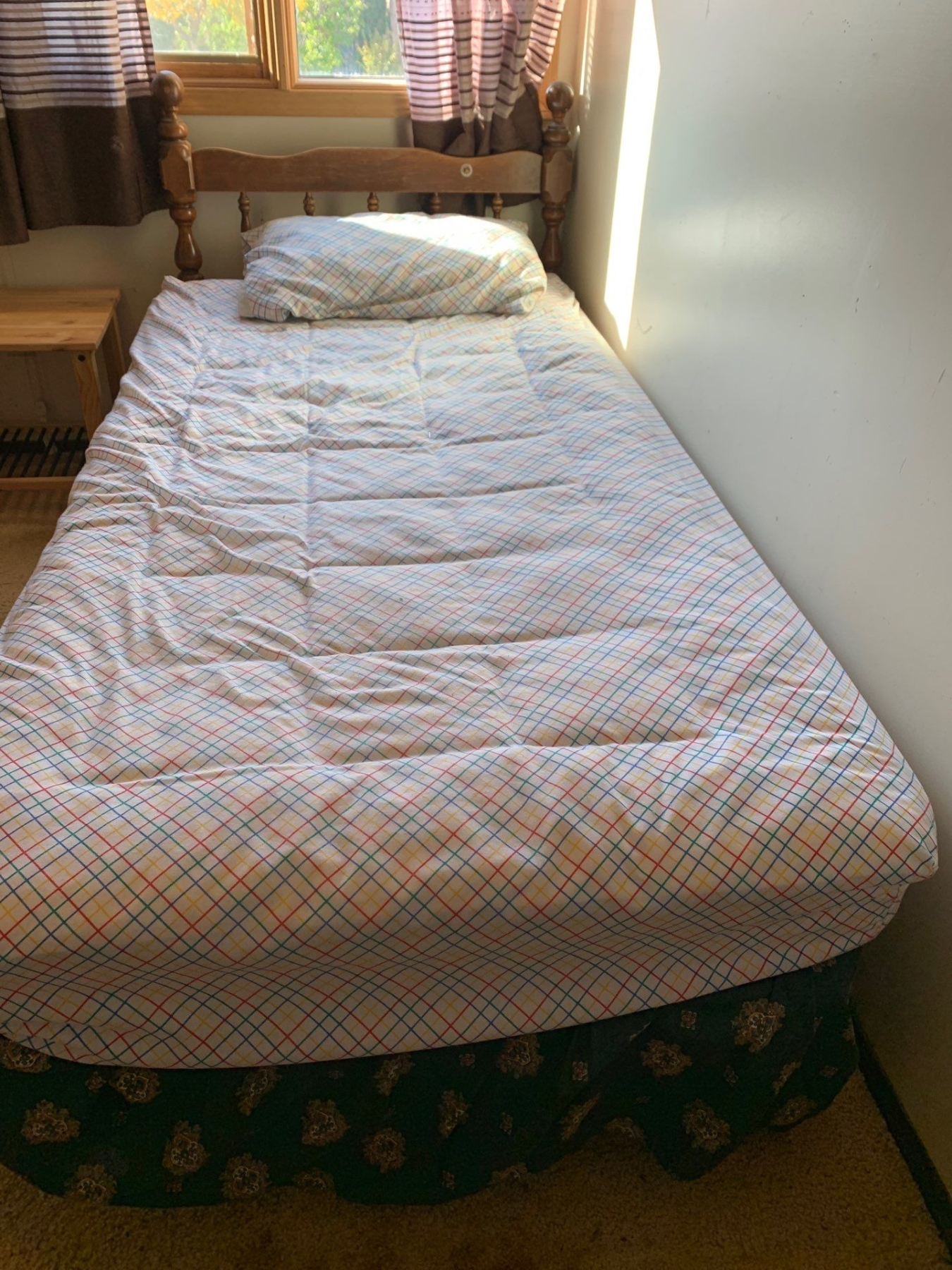 Single Wooden Bed frame with Mattress Box Spring and Bedding