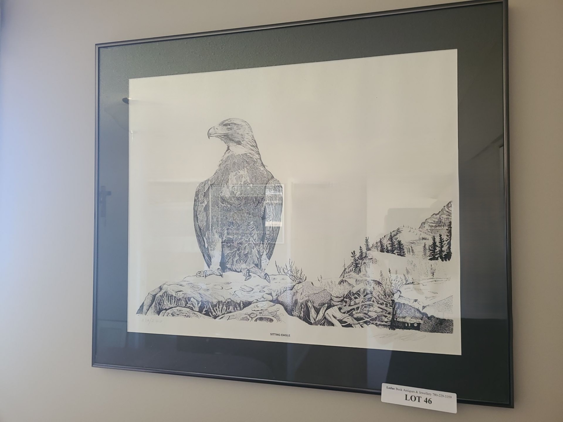 Sitting Eagle Limited Edition Print 230/240 by Roland Rollinmud. 26 w, 22 h