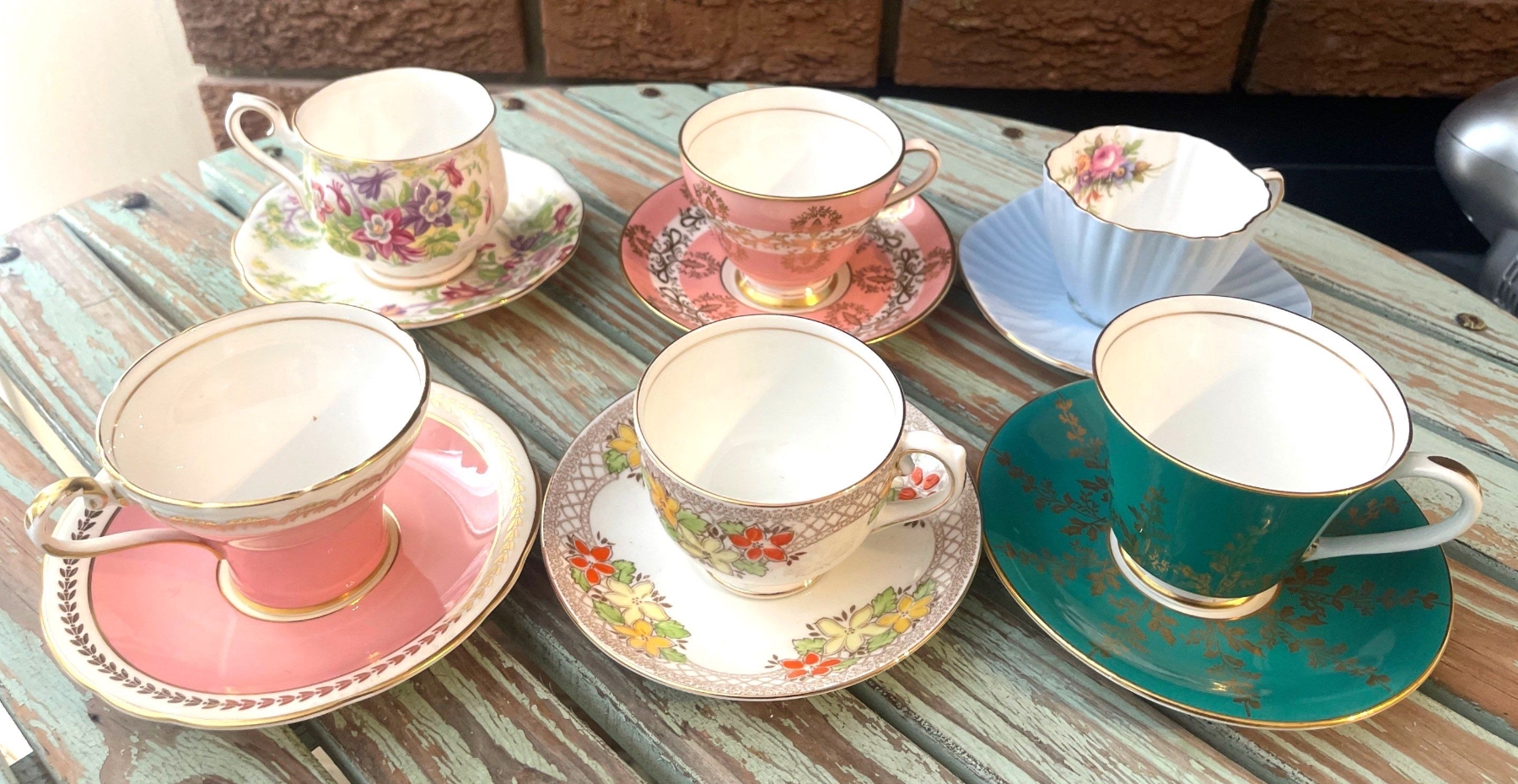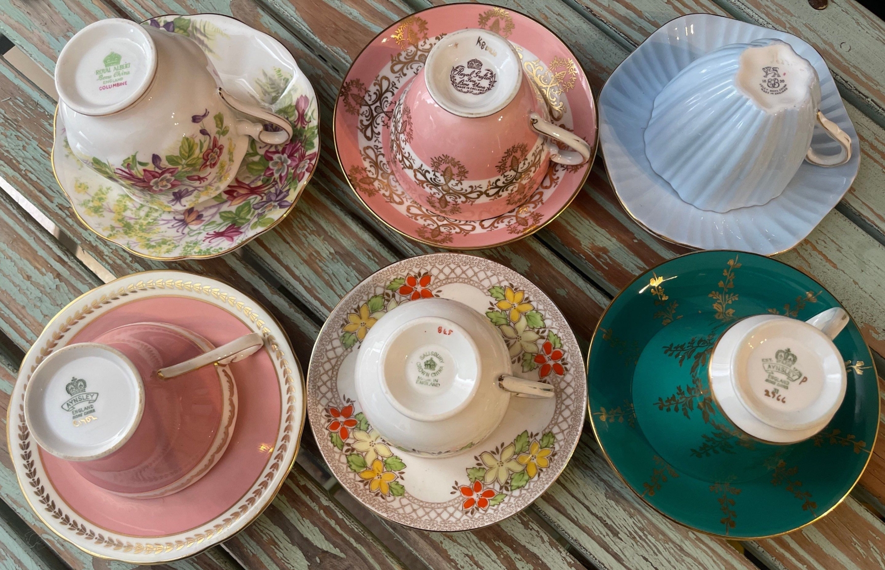 Six Collectible Tea Cups & Saucers Royal Albert, Aynsley, Salisbury Crown, Royal Grafton, & More
