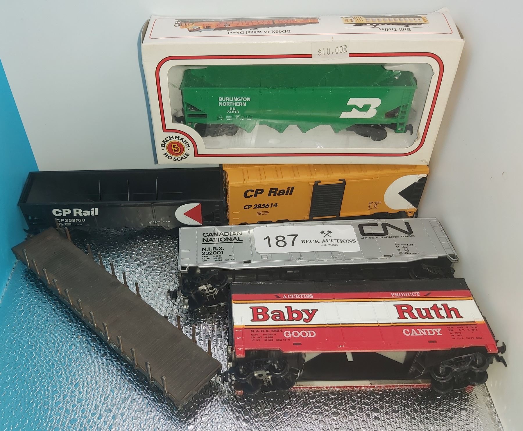 Six Pieces of Railroad Cars Including a Baby Ruth Car