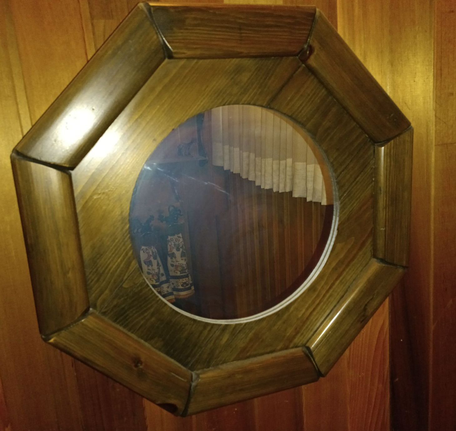 Six Sided Mirror With Wooden Frame & Base 19" x 19"tall