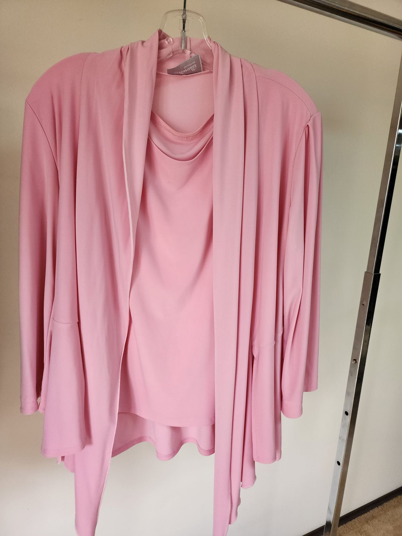 Size 12/L/XL - Pink Genuine Leather Jacket and Velour Set