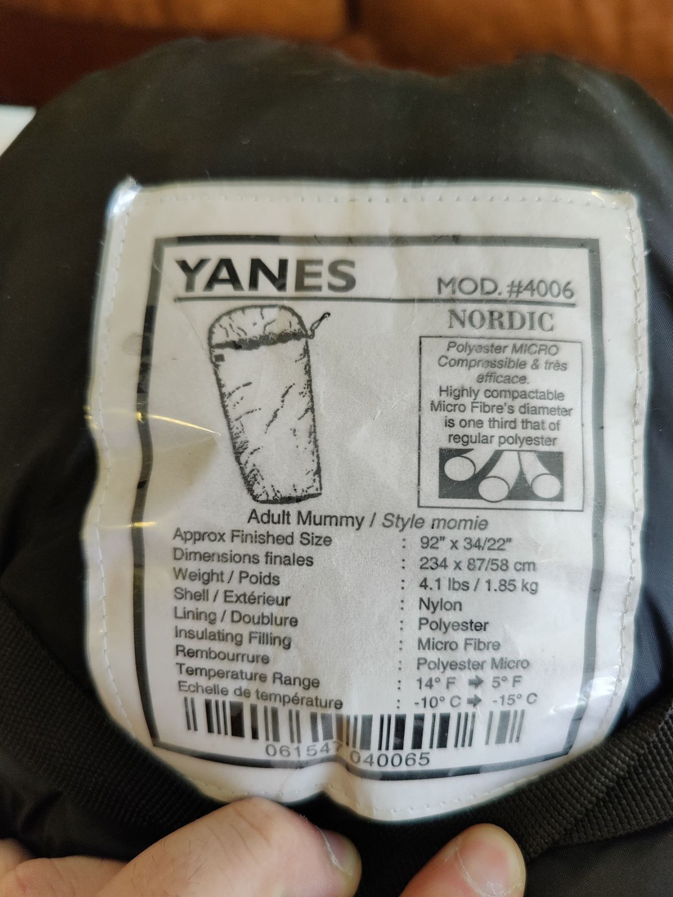 Yanes Nordic mummy style sleeping bag Model no. 4006