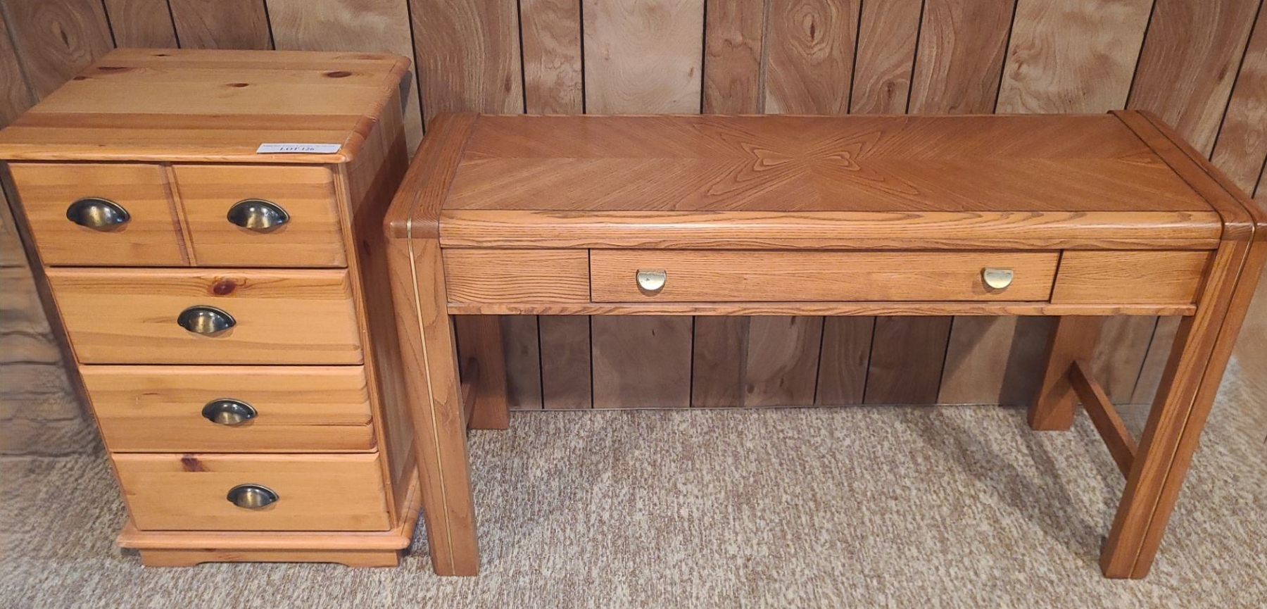 Small 4 Drawer Pine Dresser, 19 w, 31 h, 15 d, Kroehler Wooden Hall Table w Drawer. 47 w, 27 h, 15