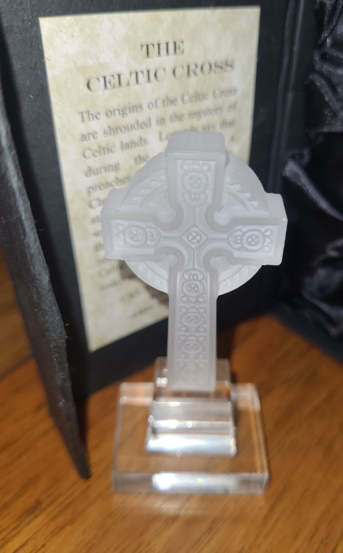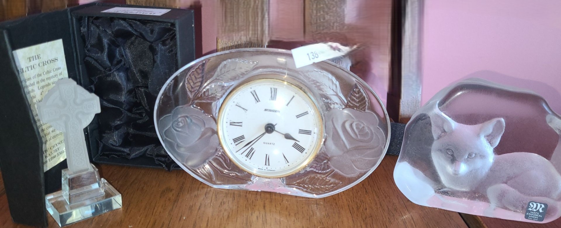 Small Celtic Cross, Clock w/ Roses 7 W, 4 T , Mats Jonasson Fox 4.5 W, 3.5 T
