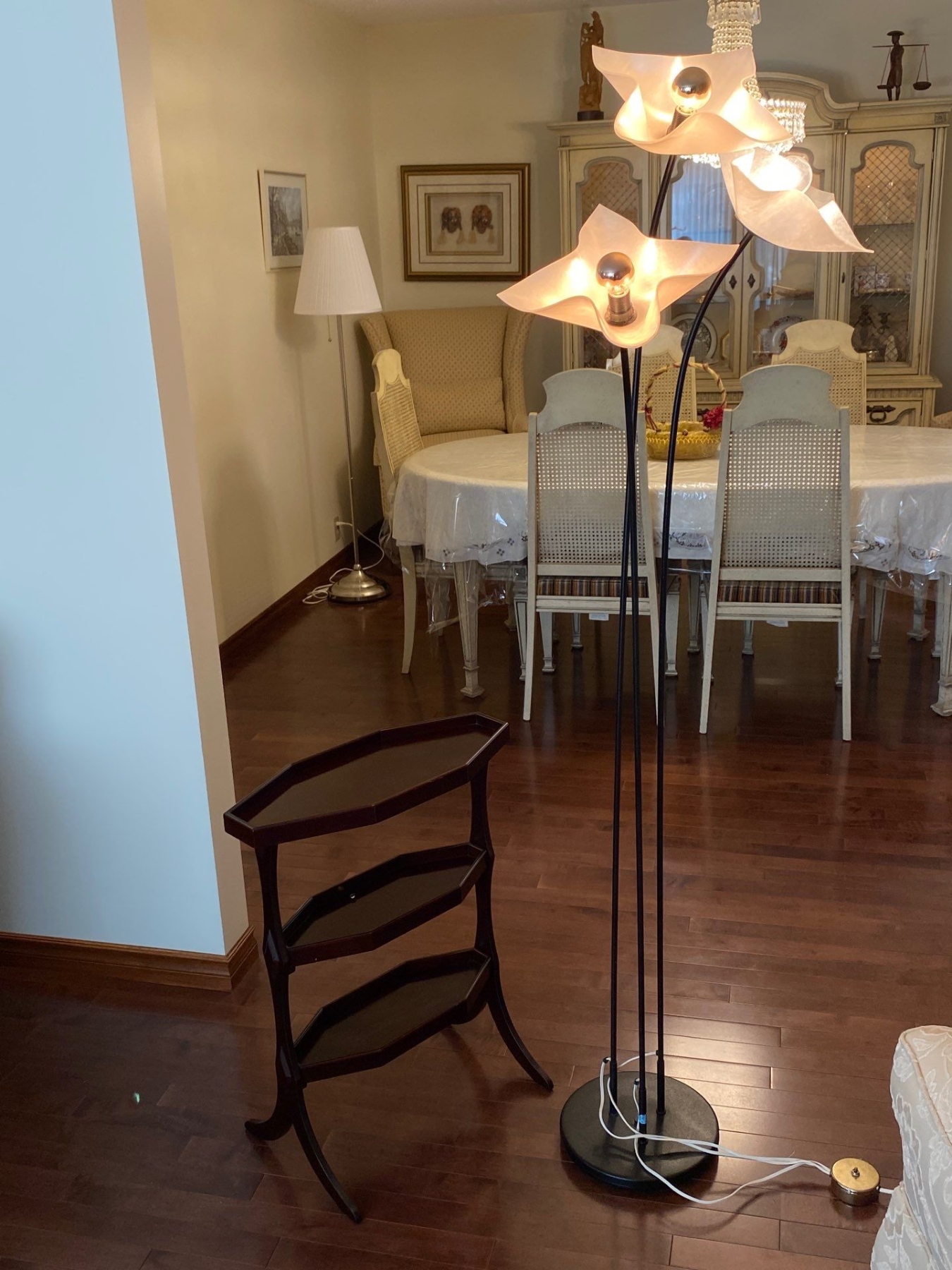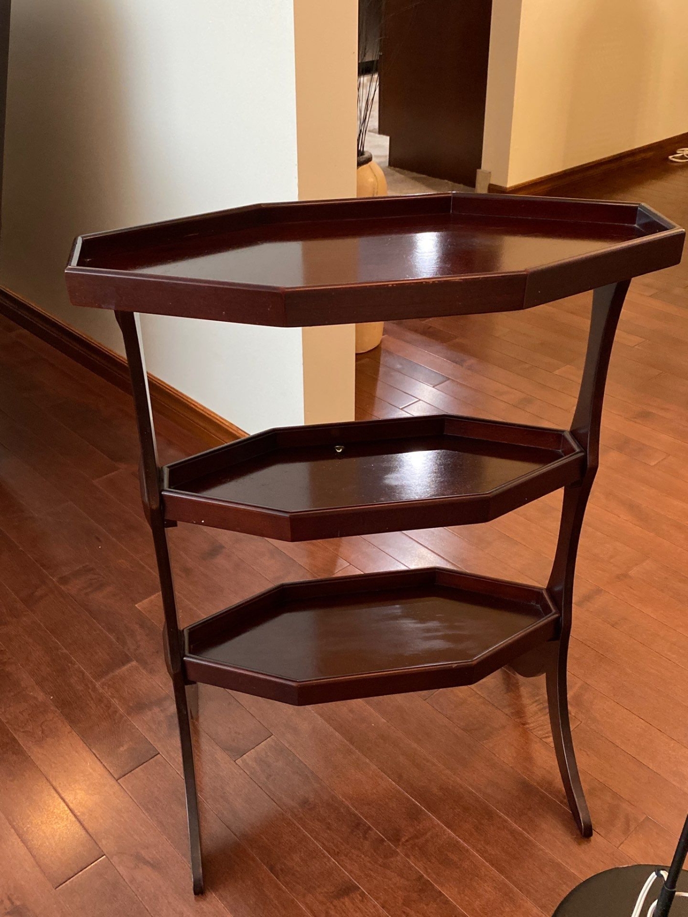 Small Mahogany Wood Side Table 21W x 27T & Decorative Floral Reading Lamp 69T