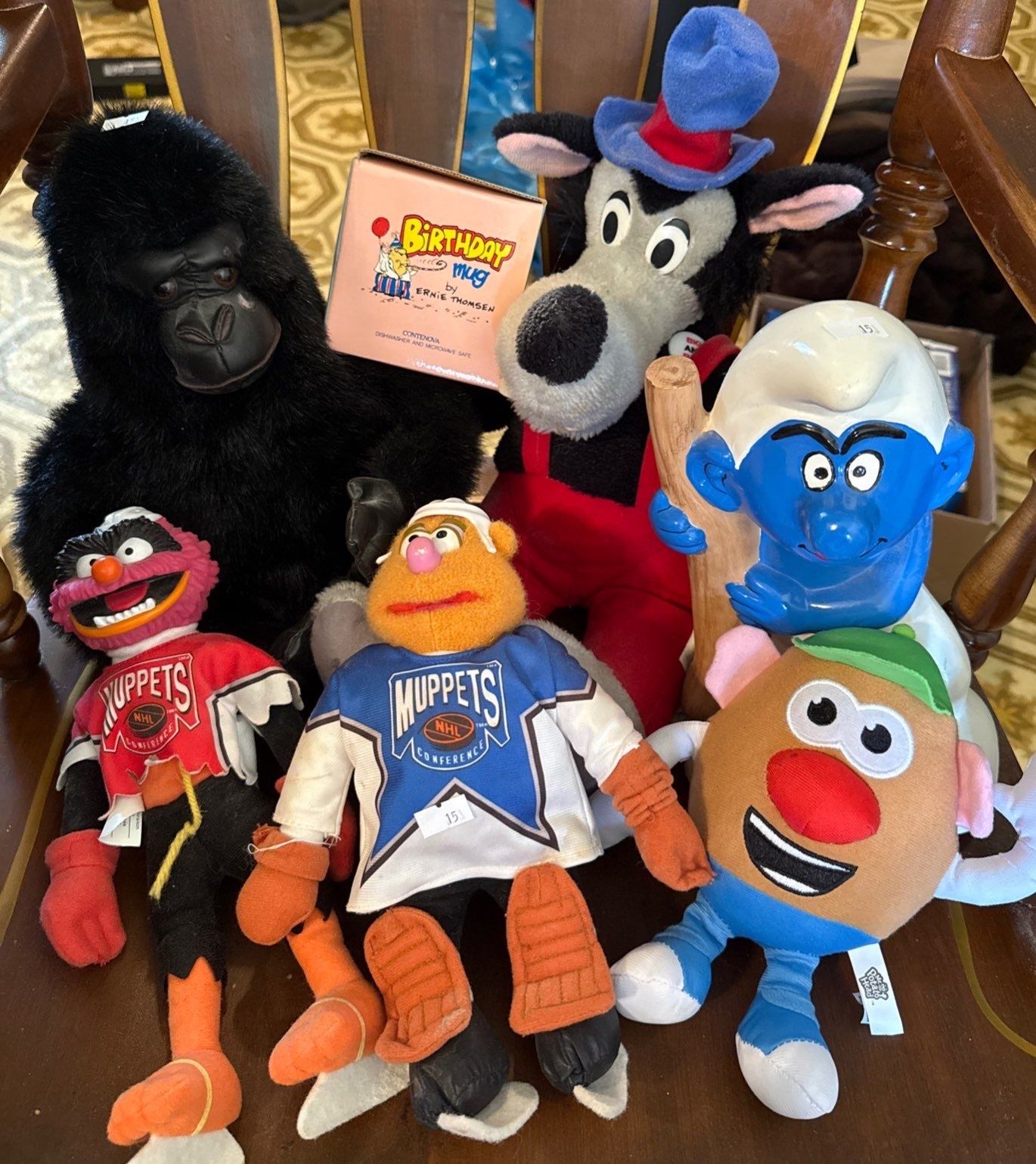 Smurf 11T Gorilla Muppets Hockey Players Stuffies Big Bad Wolf & Small Donald Duck Head