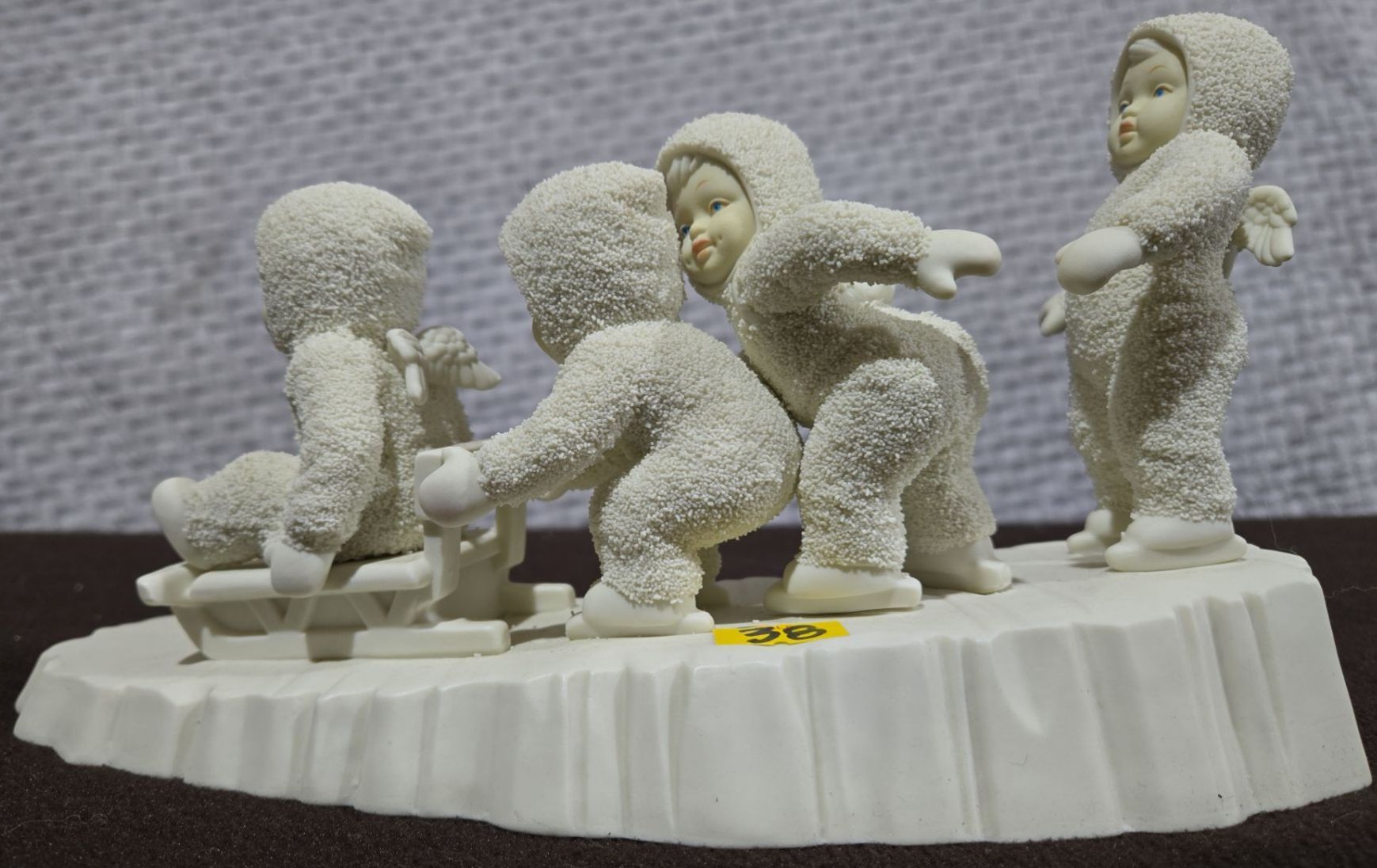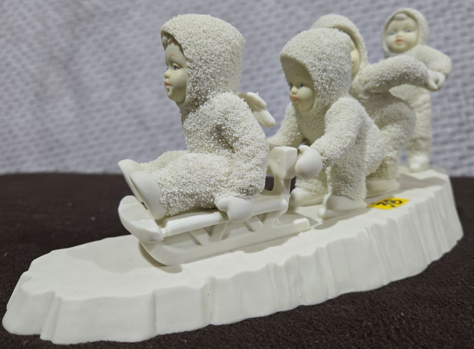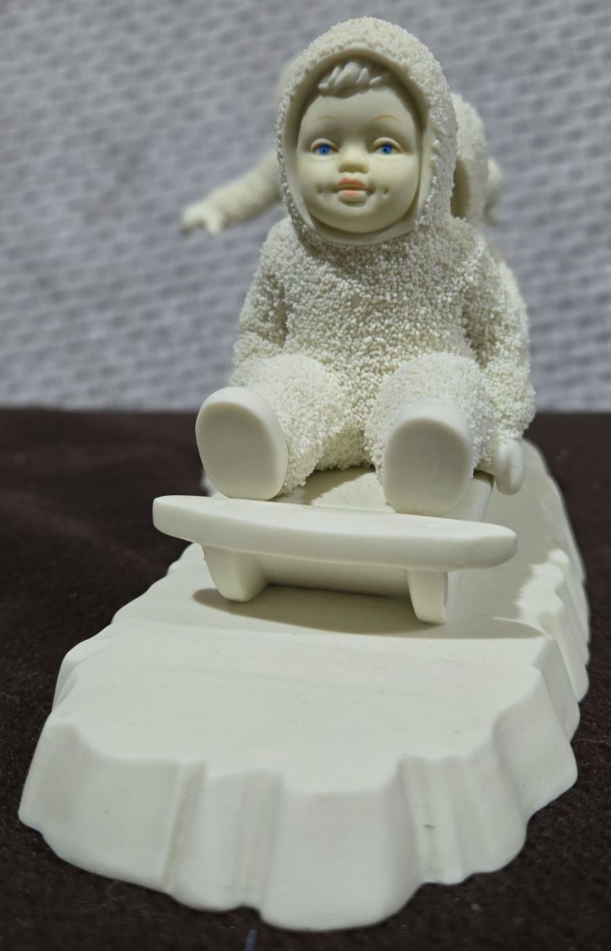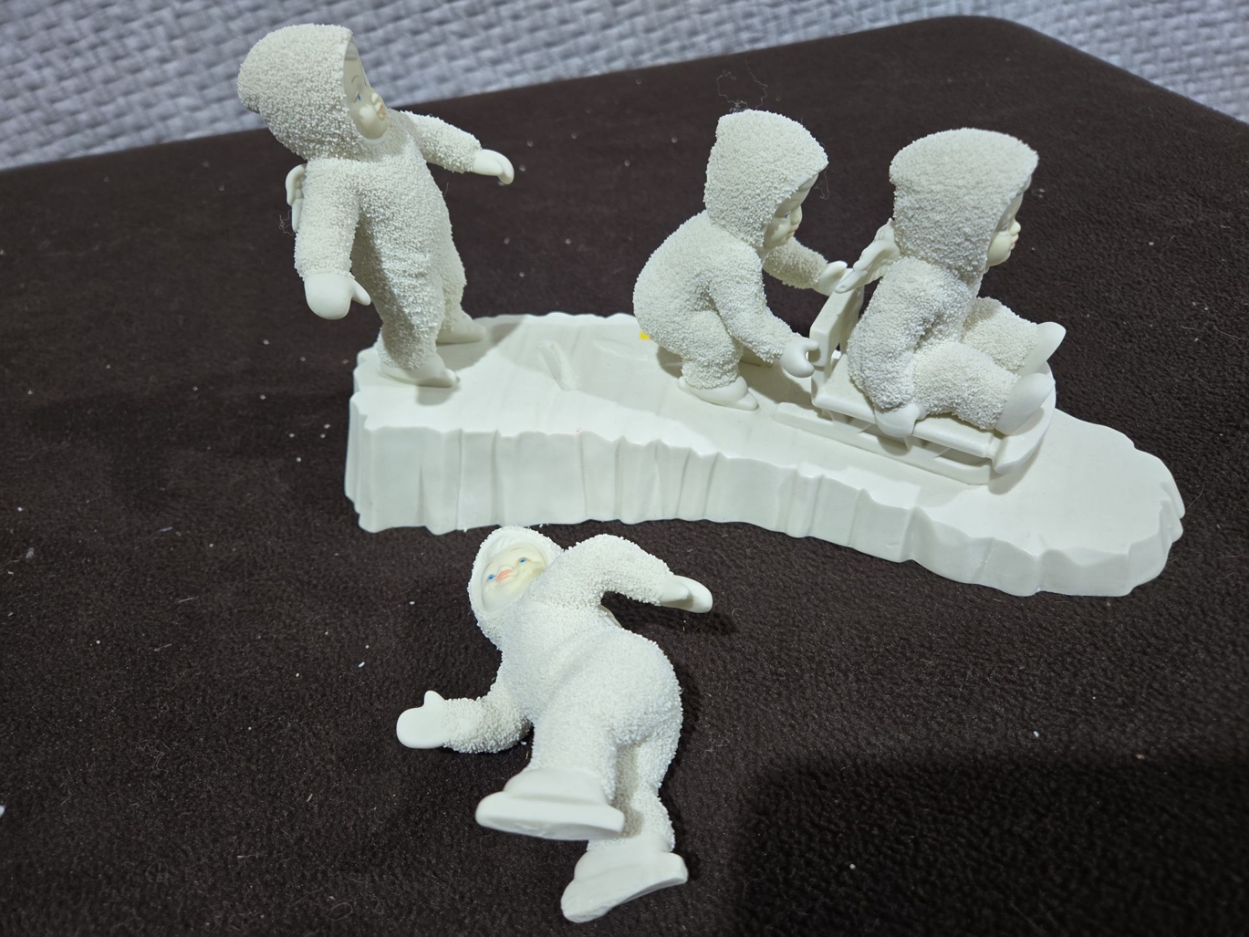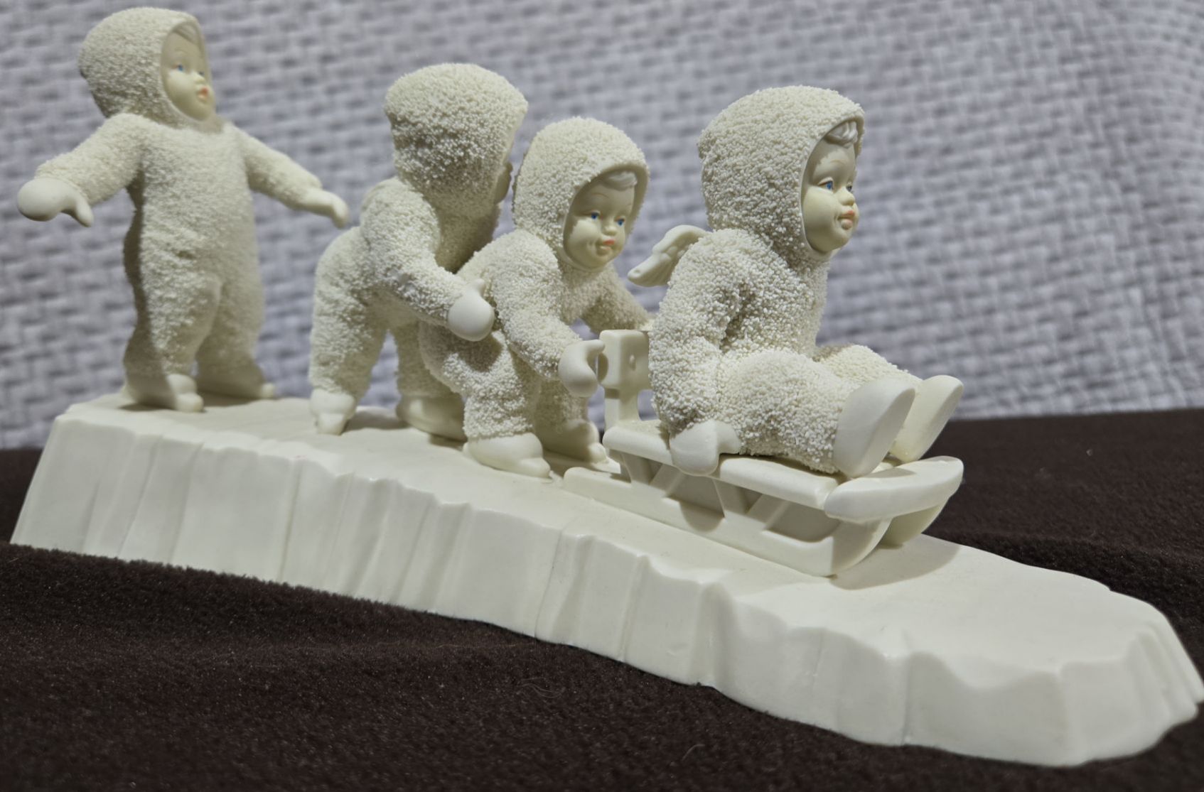 Snow Babies Skiing & Sledding "I'm Right Behind You" (one needs reattachment)