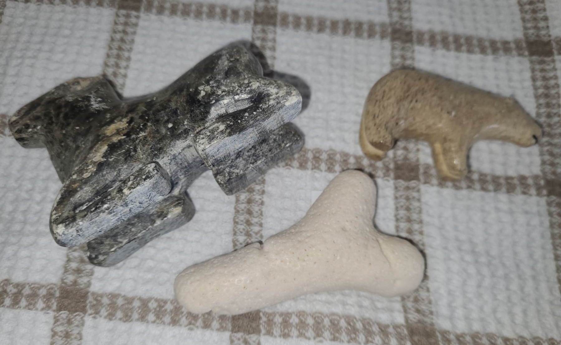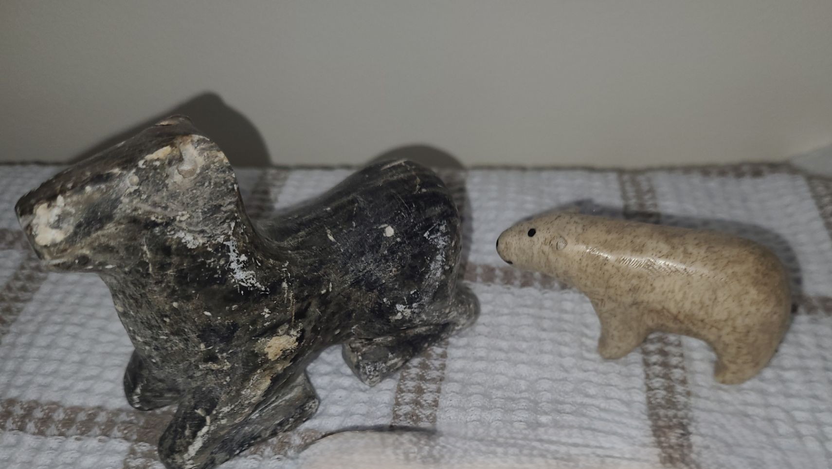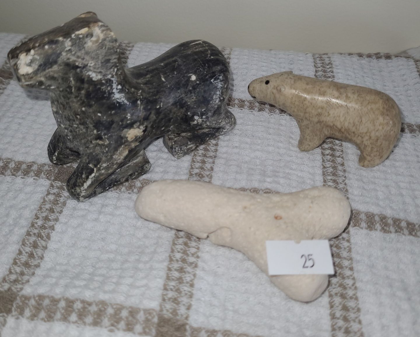 Soapstone Carvings: Largest Deer 1.5 W, 3.5 D, 3 T - Polar Bear 3 W, 1.5 T