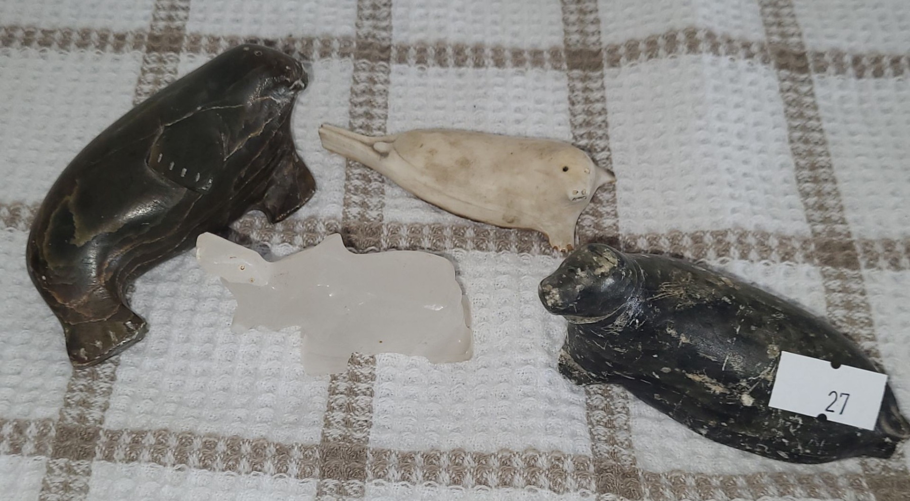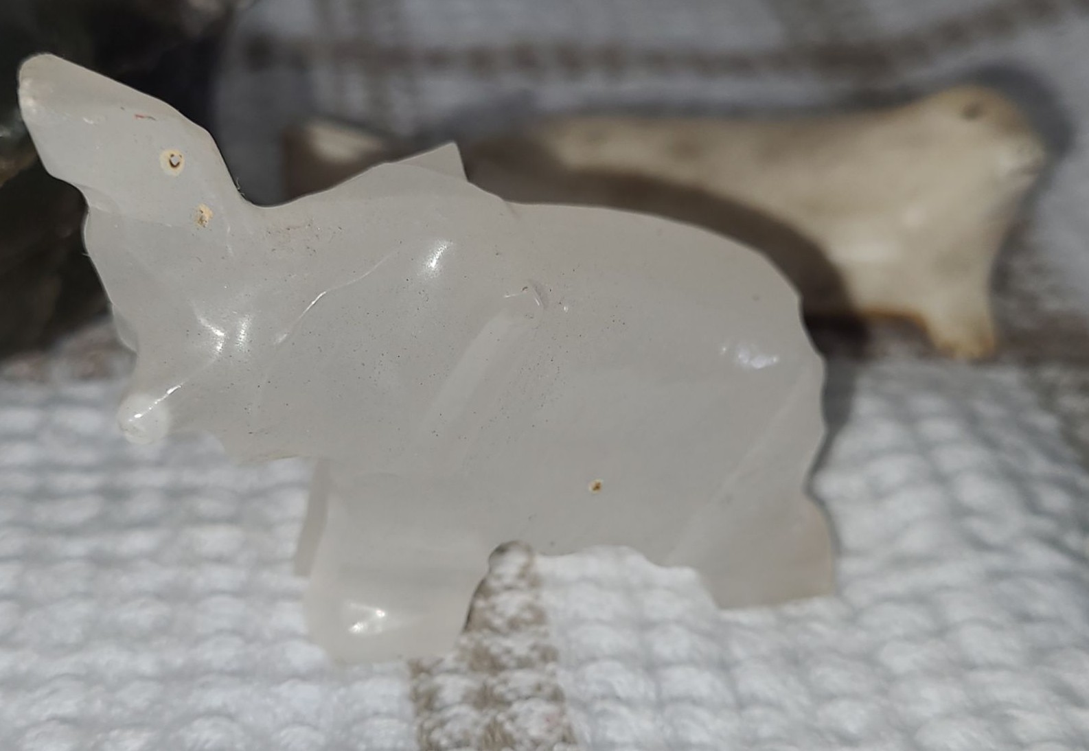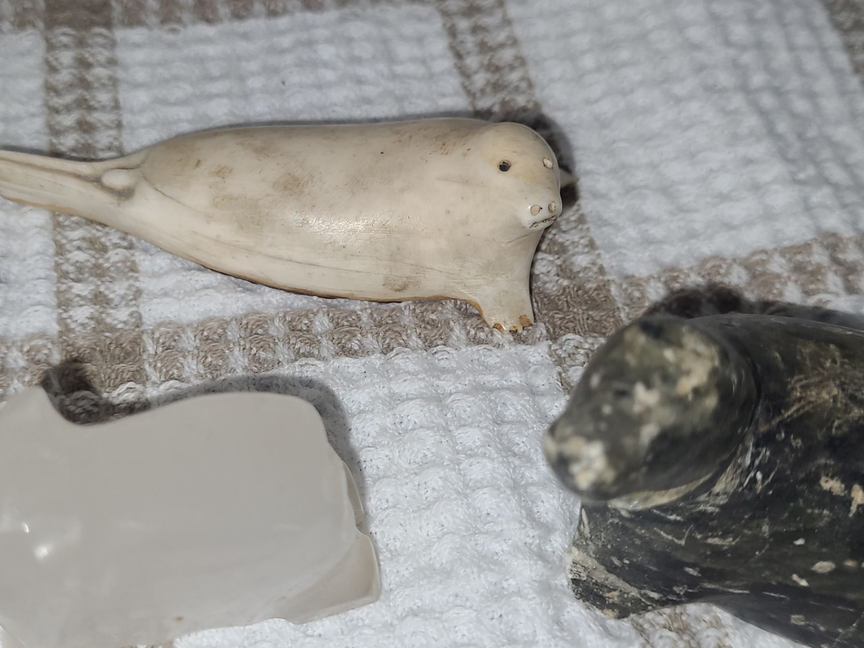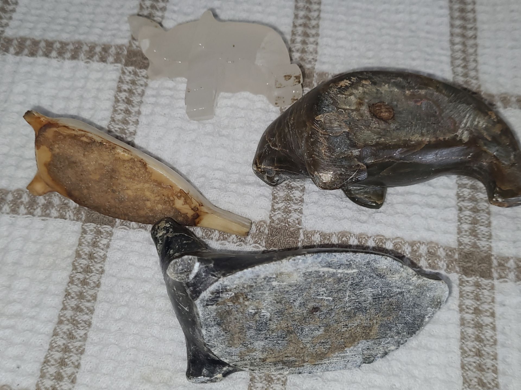 Soapstone Carvings- Largest Seal: 3.5 W, 1.5 T, Includes Quartz Elephant