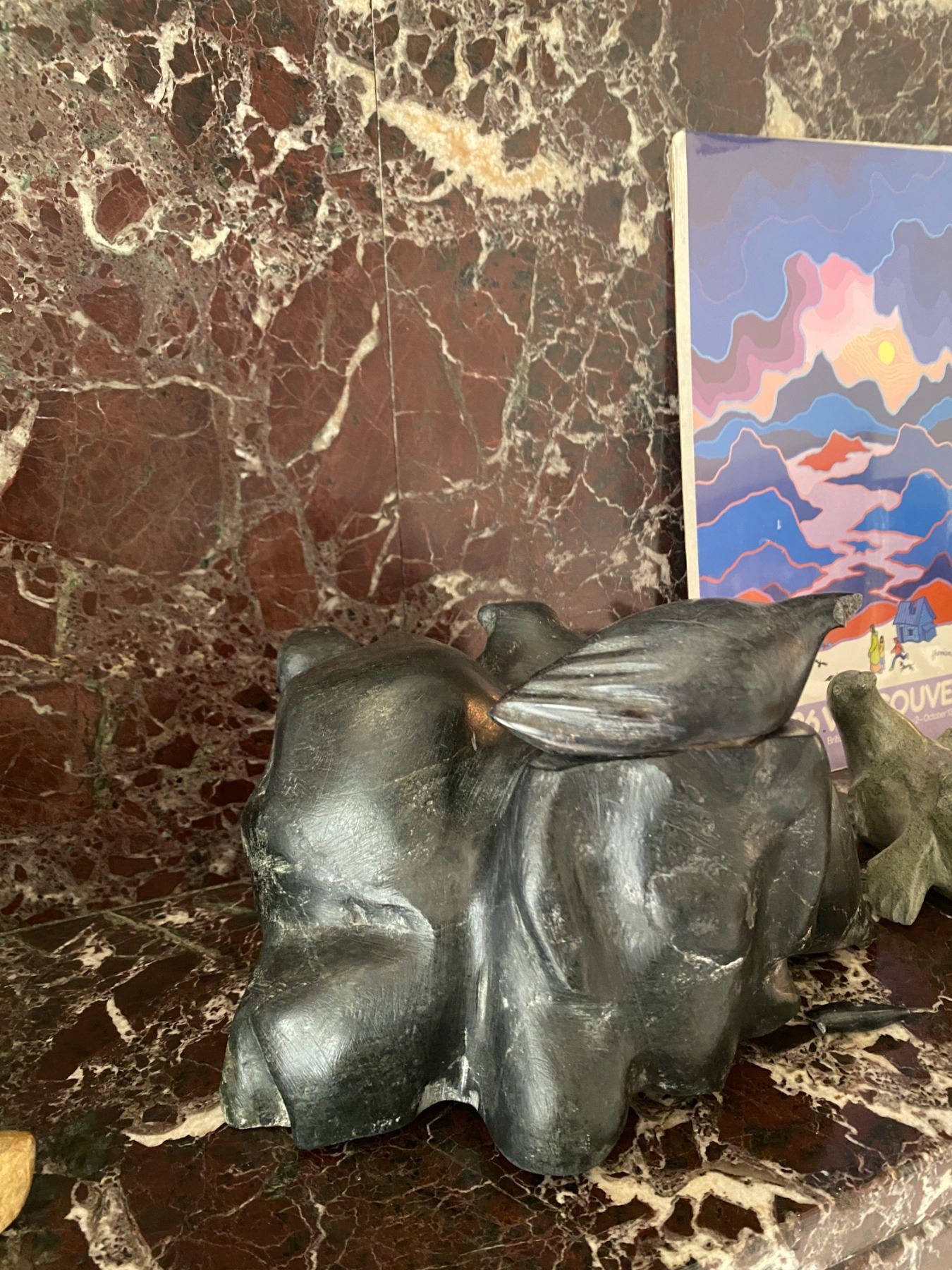 Soapstone Sculpture "Man & Birds" Artist: Iqulik (slightly damaged)