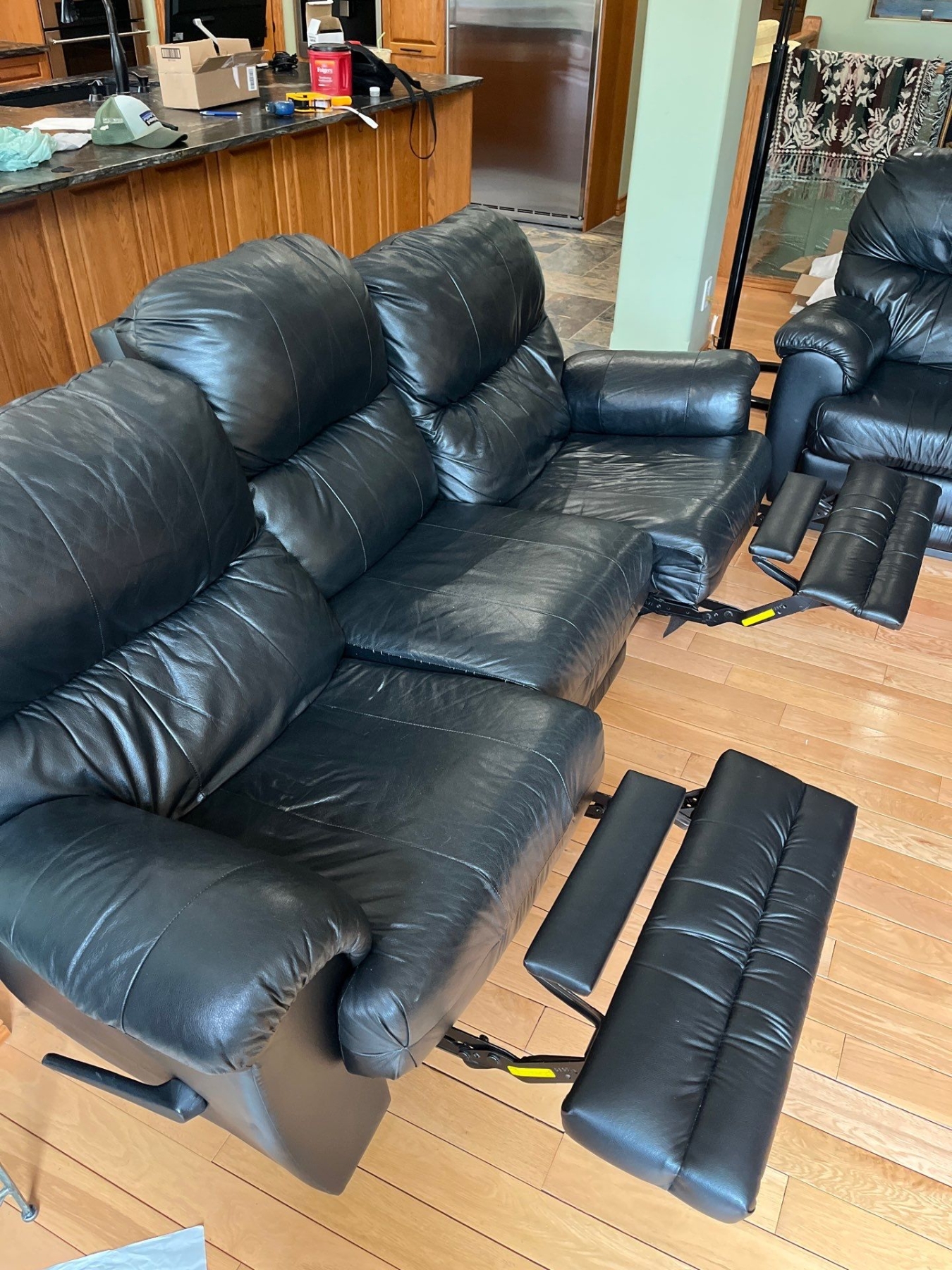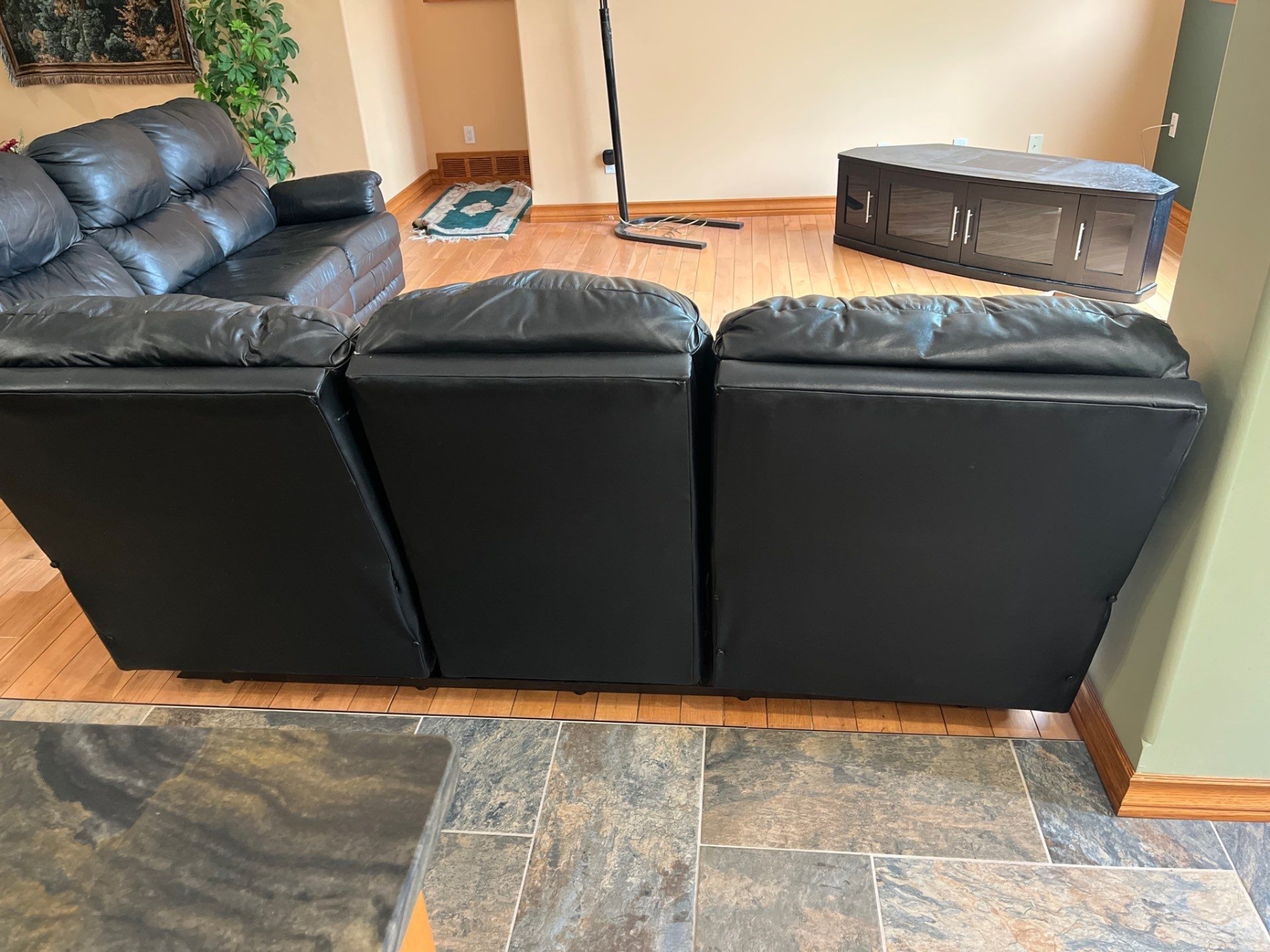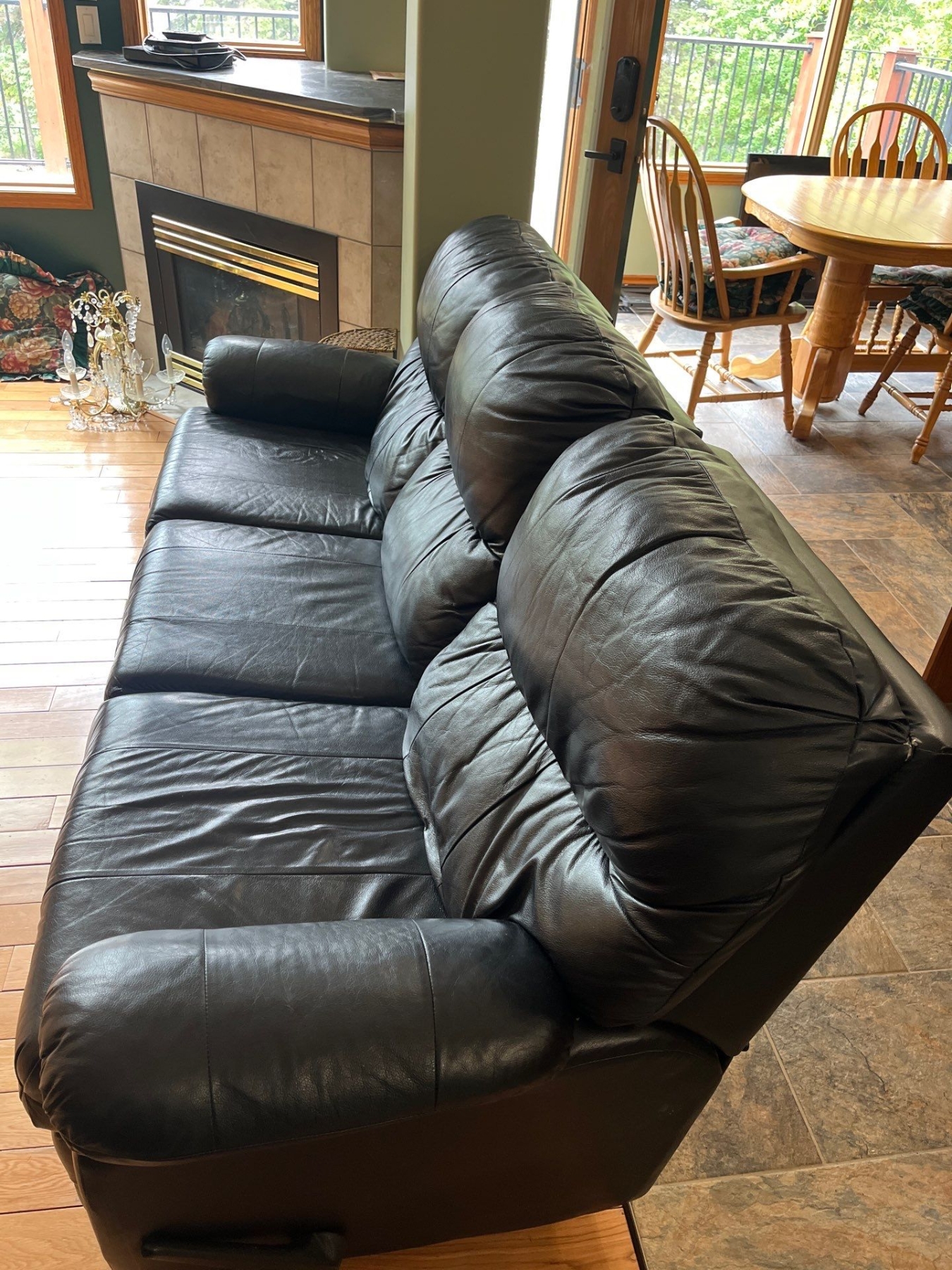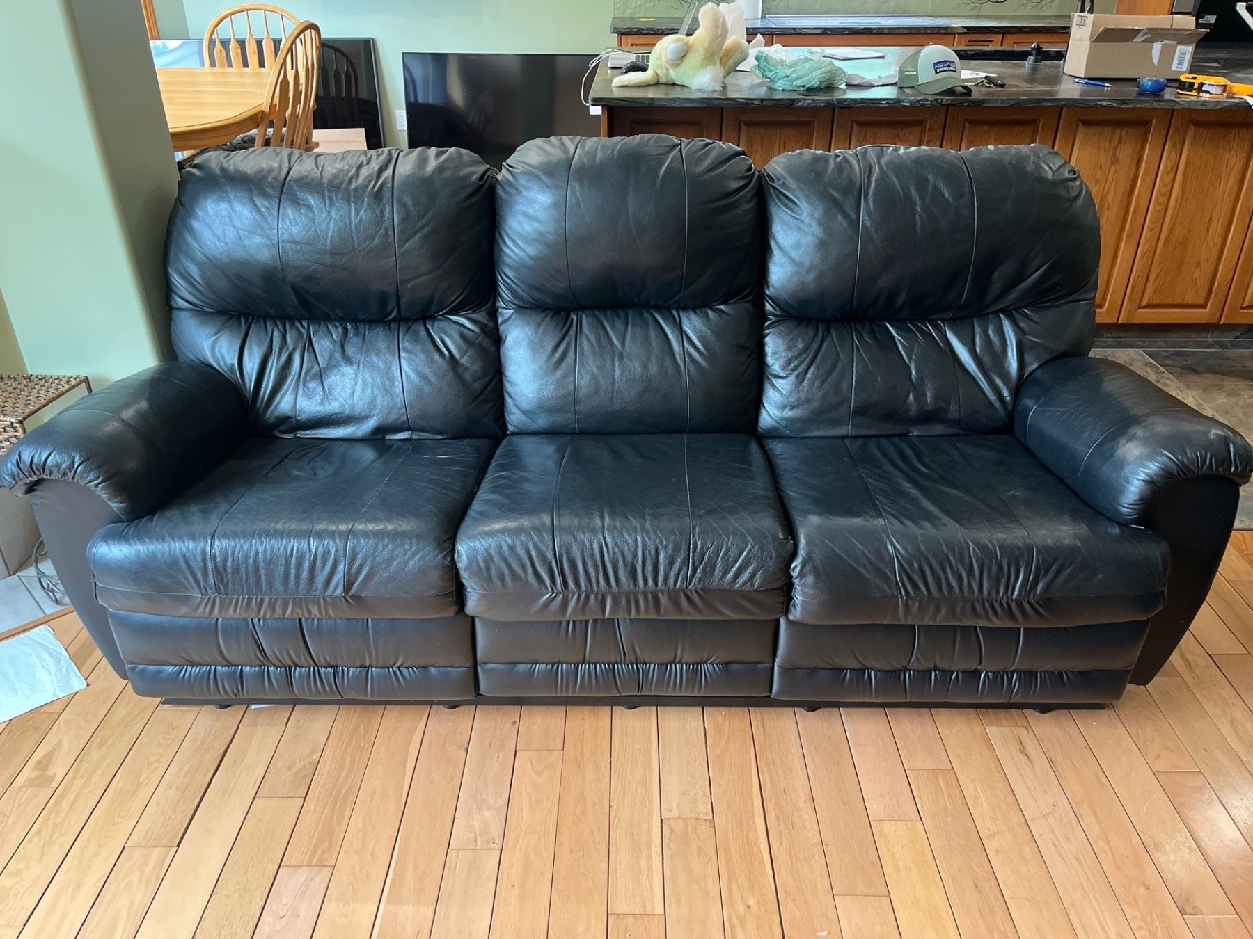 Soft Black Leather Reclining Couch In Great Condition 77"Long Depth 32" H 37"