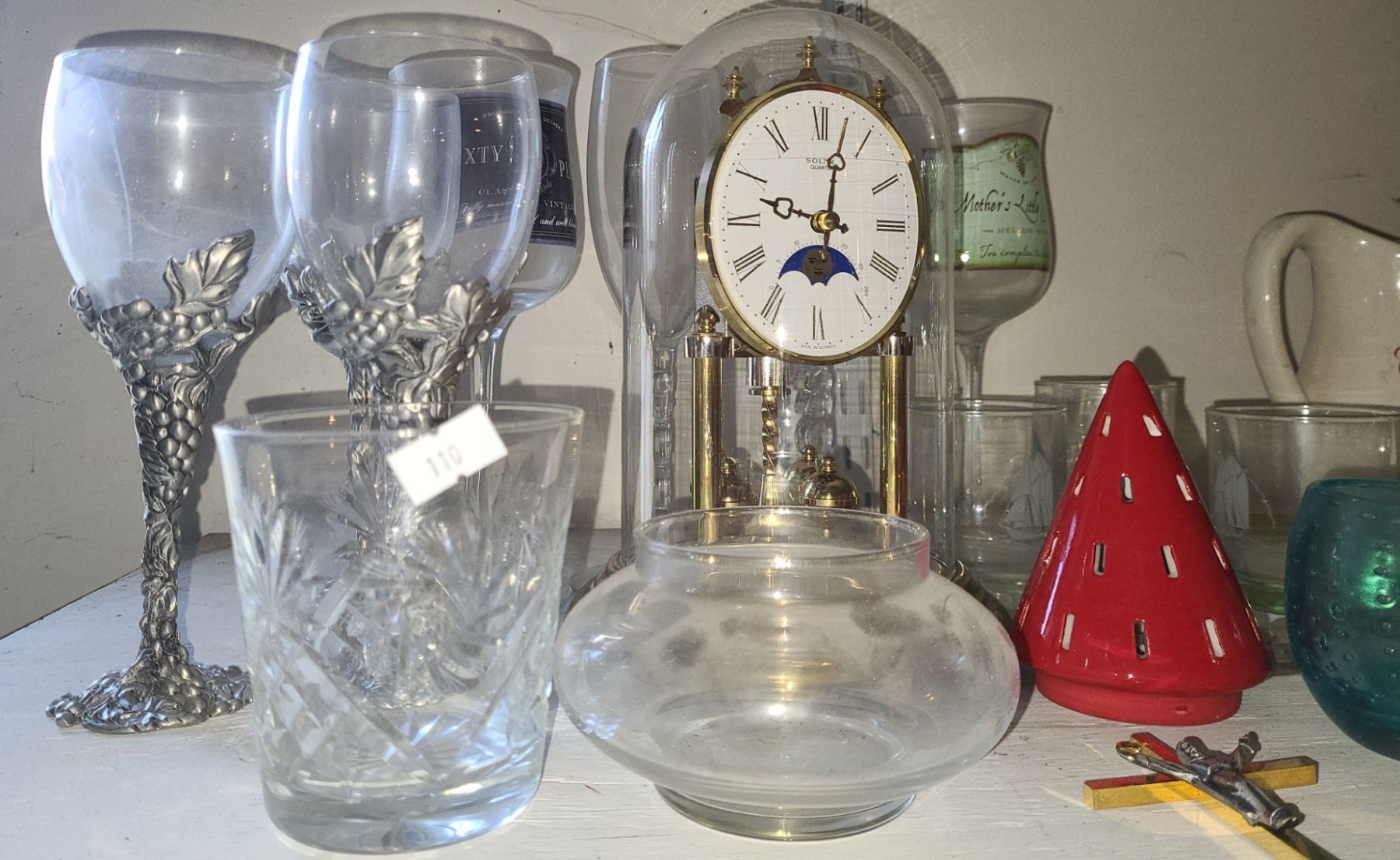 Solar Quartz Clock in Glass Dome 6.5" Base, 9.5 T, Barware, Candles and Various Home Decor
