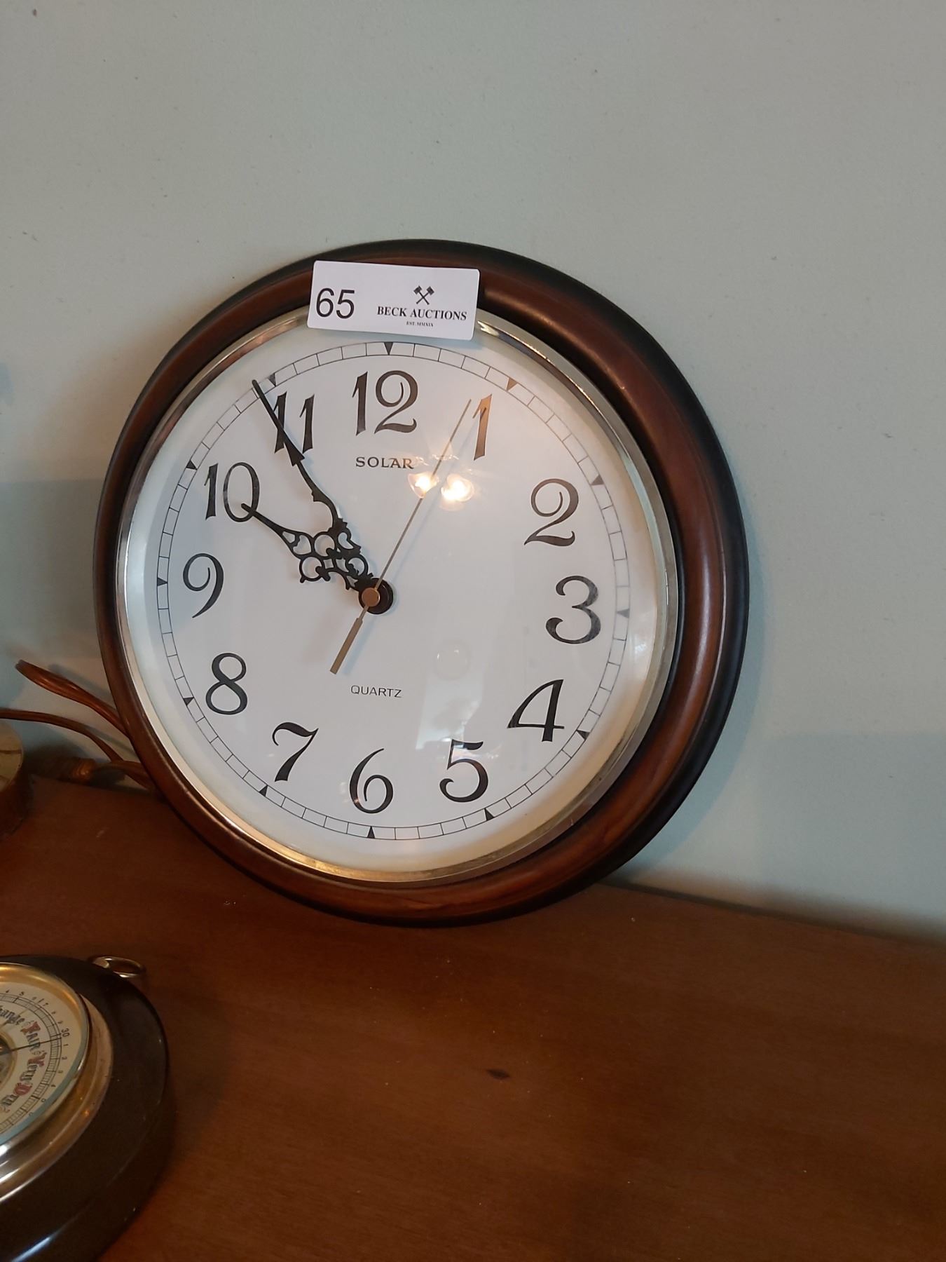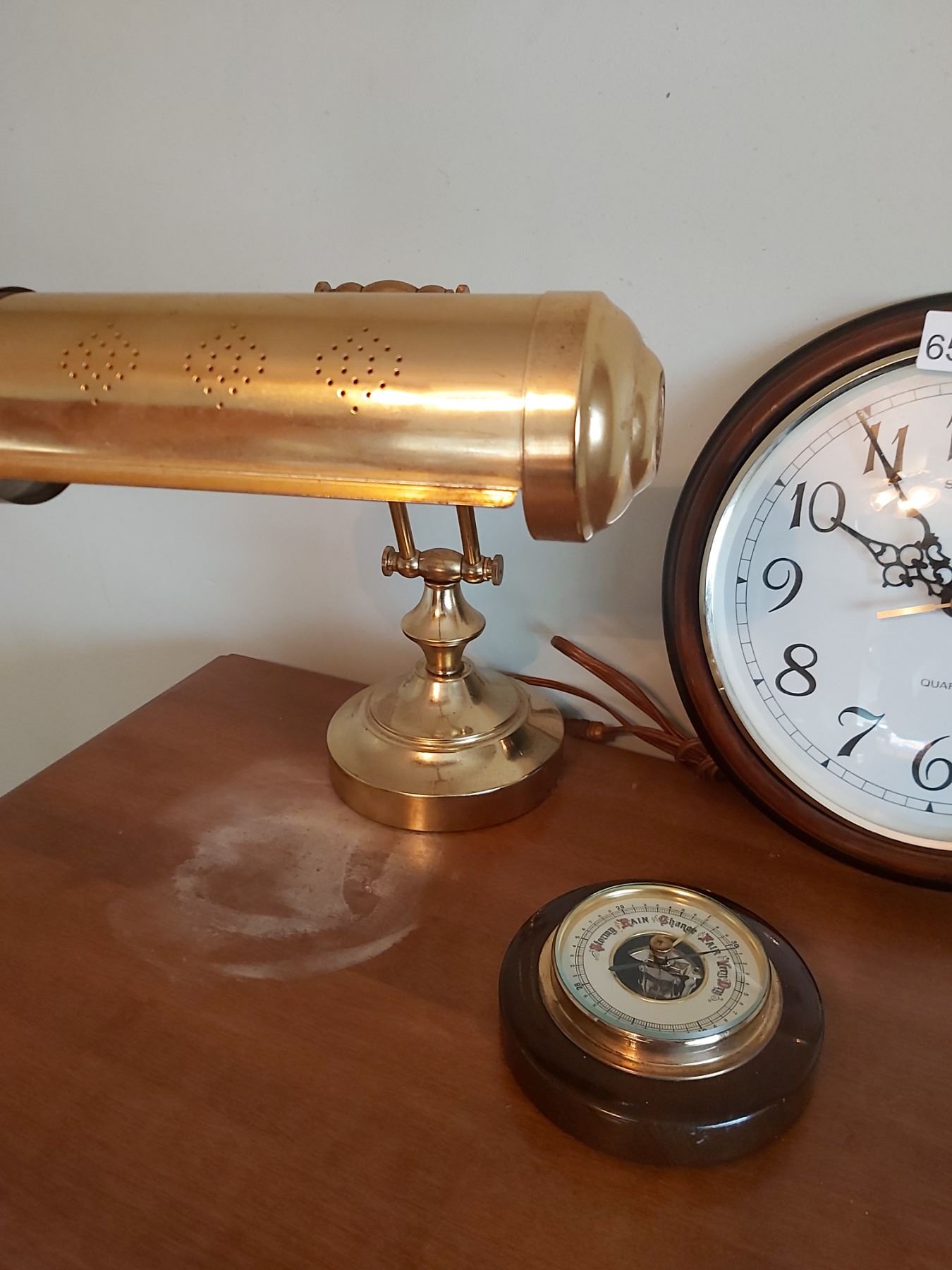 Solar Quartz Wall Clock With Brass Desk Lamp & Barometer