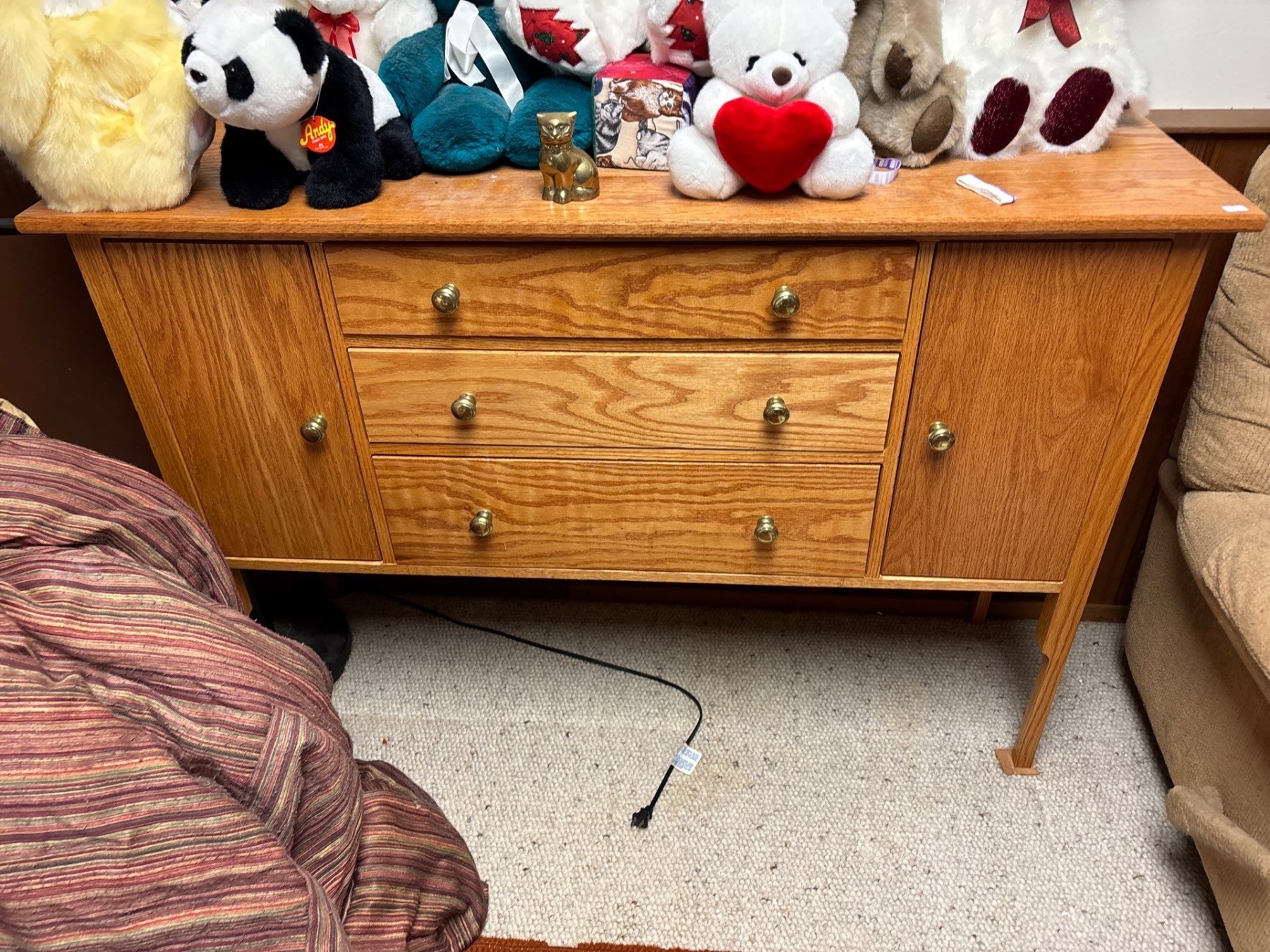 Solid Oak Sideboard 52L x 16D x 36T Brass Pulls