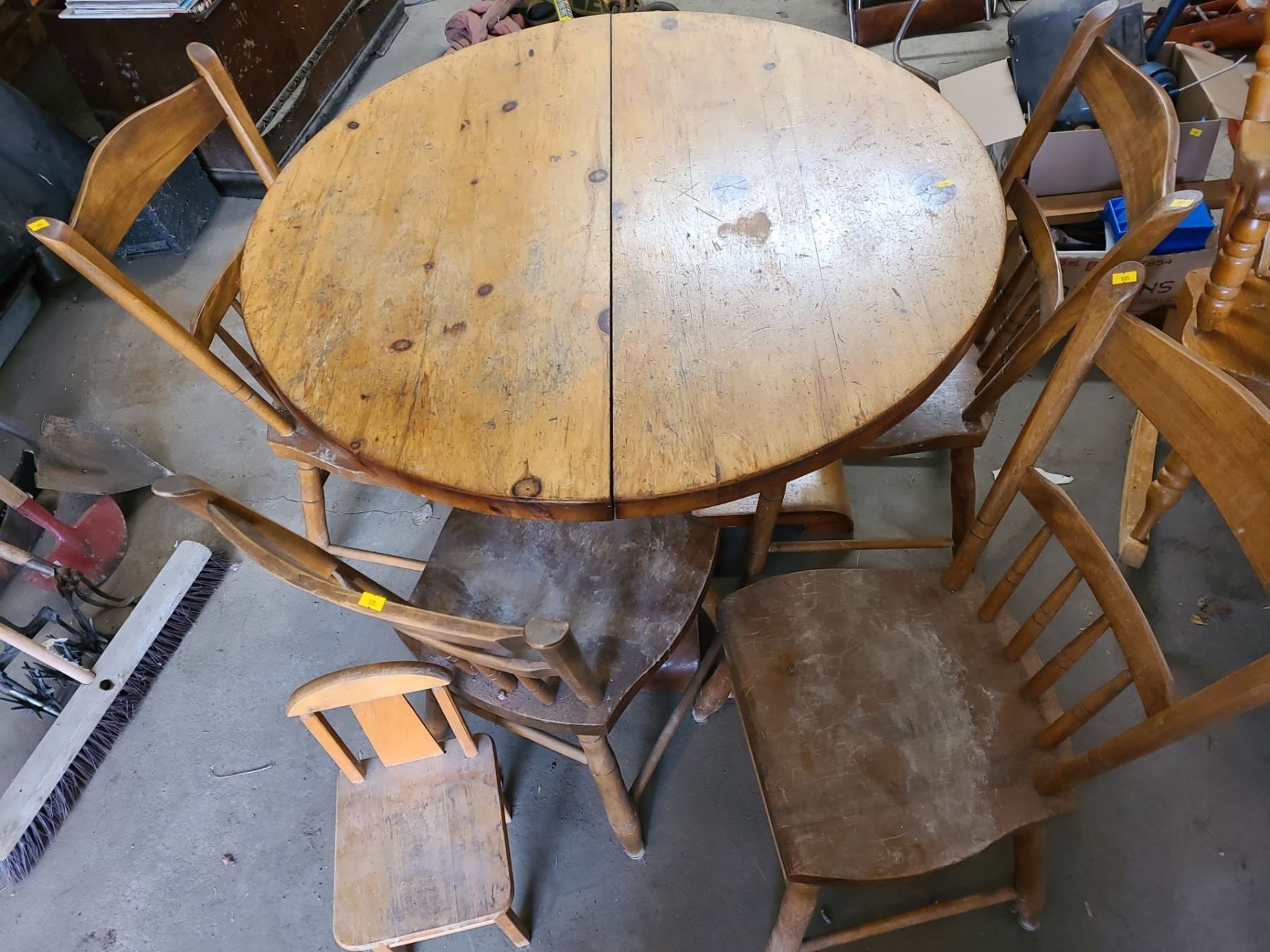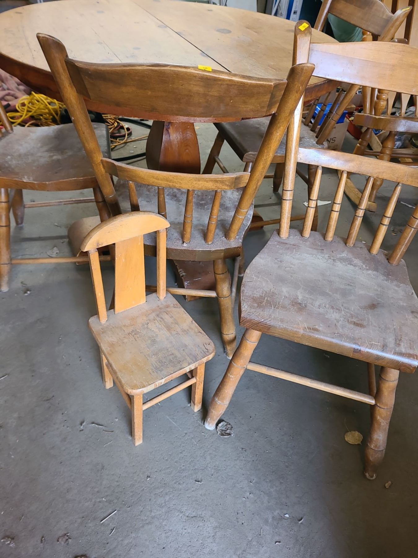 Solid Wood Dining Table (Very Heavy, 42"W, 30"T) with 4 Chairs (34T", 16"W, 15"D) and 2 mini chairs!